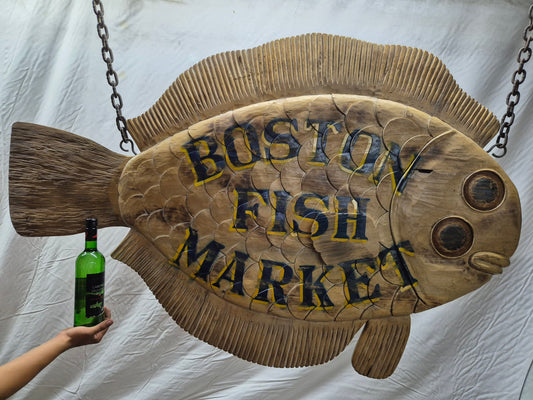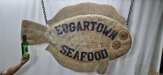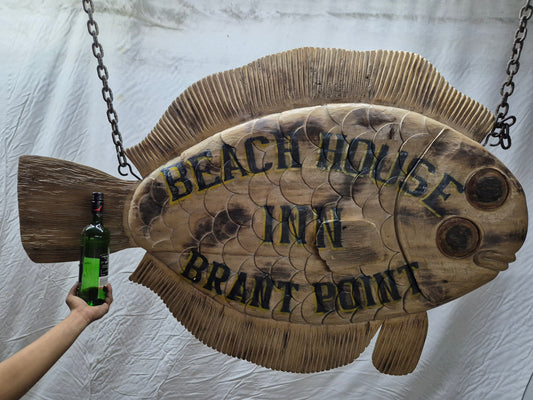 Carved Fish Trade Sign for "Beach House Inn, Brant Point"