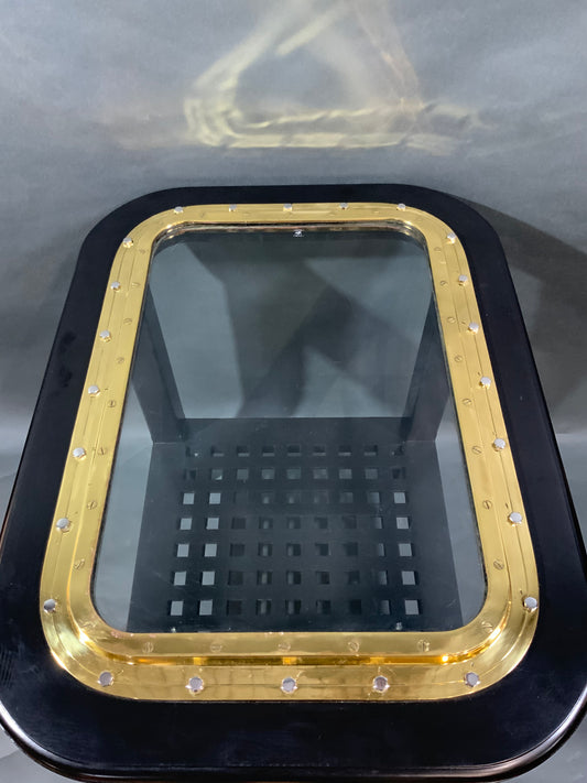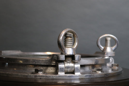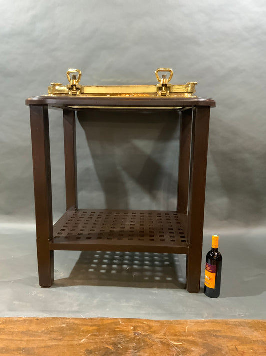 Solid Brass Ships Porthole Repurposed as a Bistro Height Table