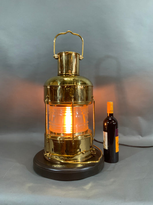 Solid Brass Ship's Anchor Lantern with Fresnel Lens by Nippon Sento Co. LTD