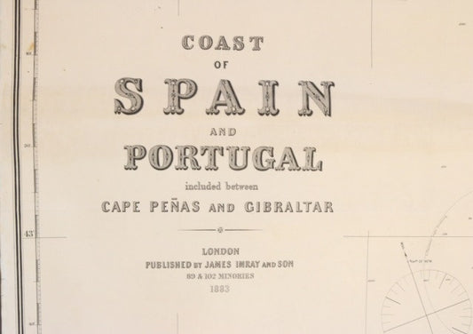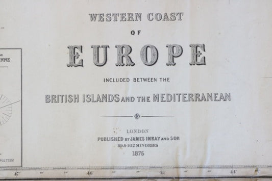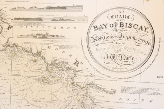 Original J.W. Norie Chart of Bay of Biscay, c.1855