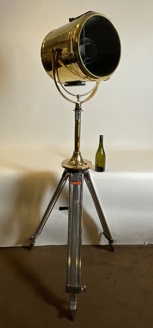Brass Ship's Searchlight Fitted to a Polished Steel Tripod