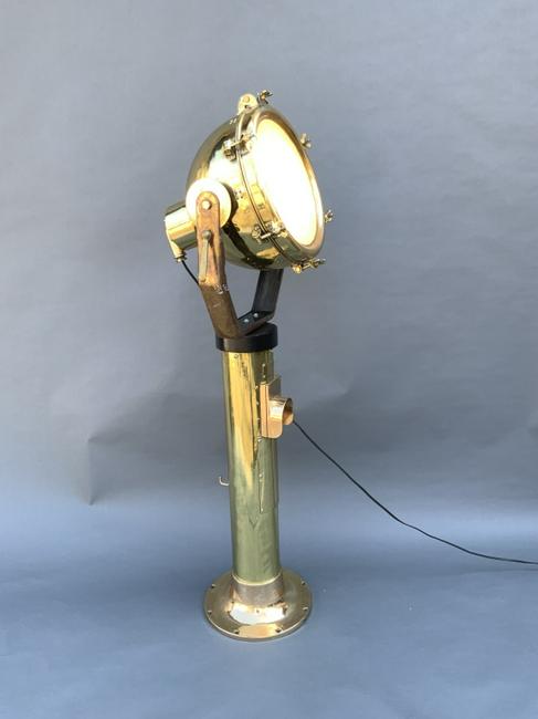 Sold Brass Ship's Searchlight Mounted to a Ship's Decking Pedestal