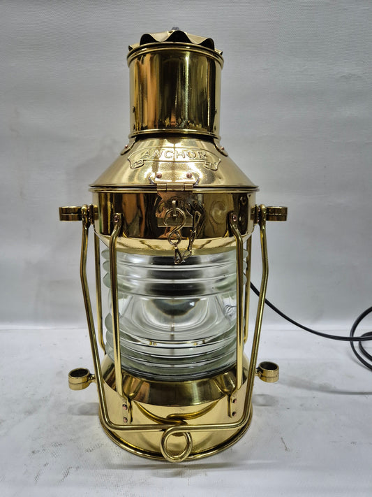Polished Brass Ship's Anchor Lantern with Fresnel Lens