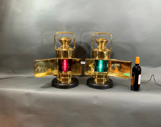 Pair of Solid Brass Ships Port and Starboard Lanterns