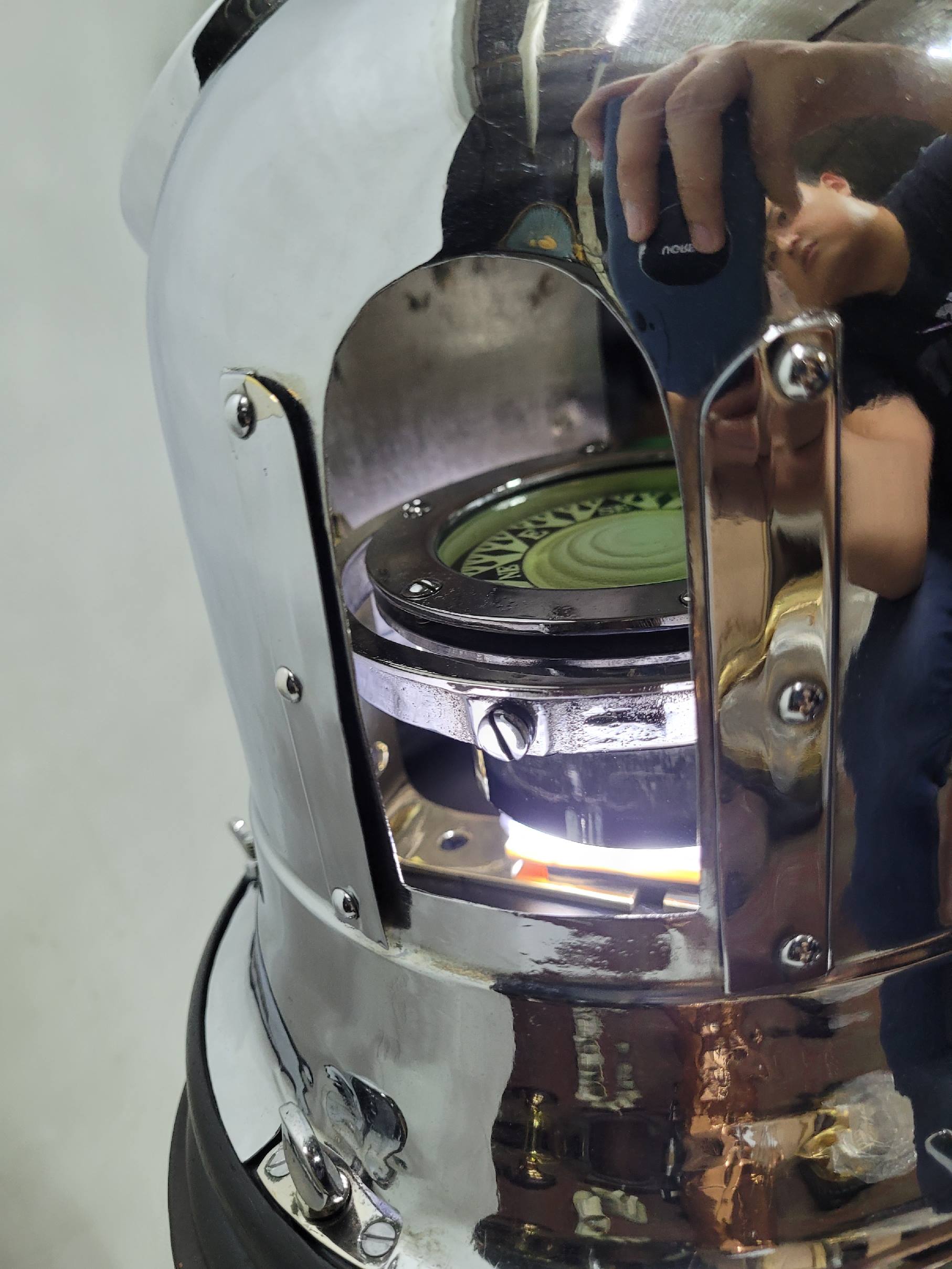 Chrome Plated Boat Compass Binnacle on Wood Pedestal