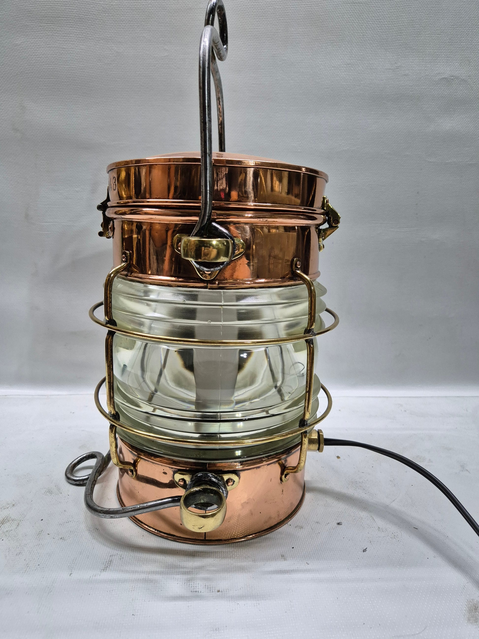 Solid Copper Marine Lantern with Fresnel Lens