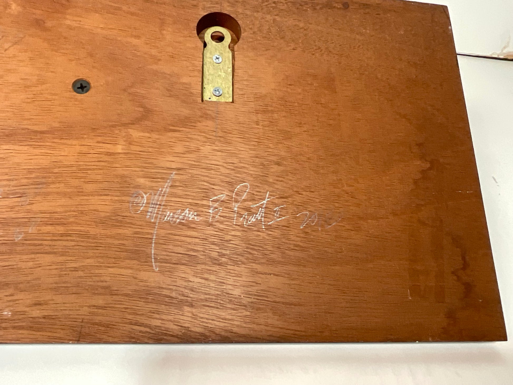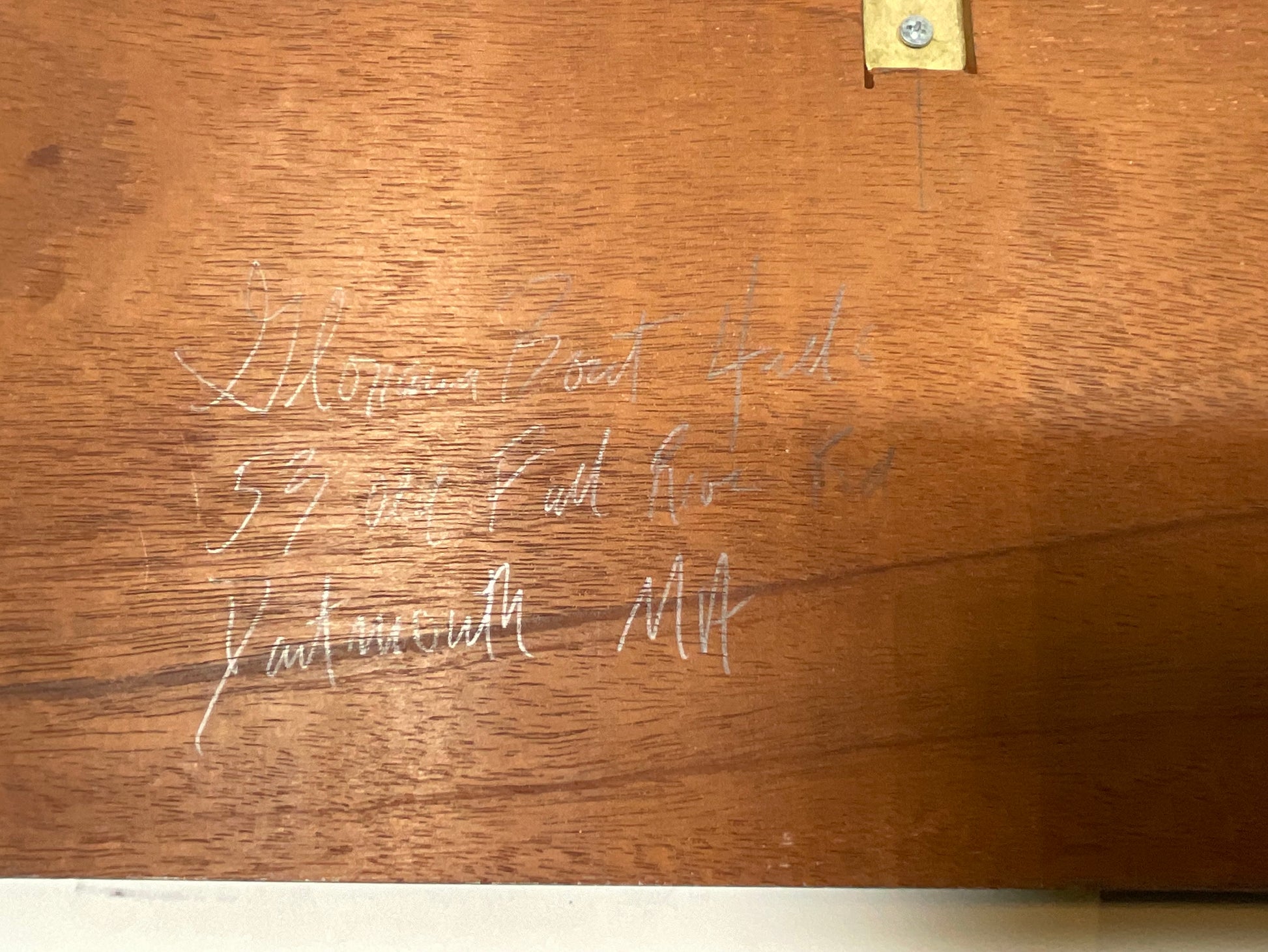Carved half model by Marsom Pratt Jr. of a Herreshoff Design 907, a 30 foot drop centerboard sloop with long mahogany trunk cabin and sunken cockpit. Exceptional craftsmanship.
