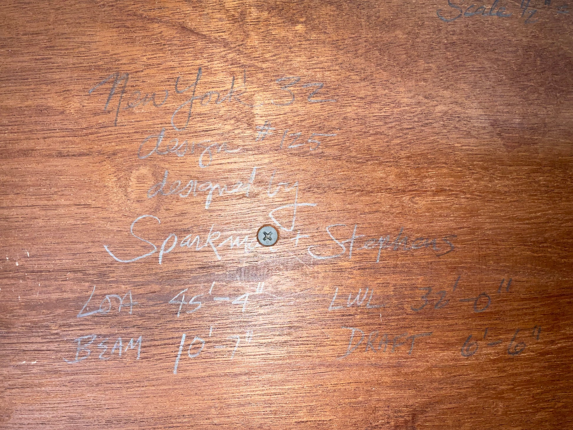 Sparkman & Stephens designed sailing yacht half model by Marsom Pratt II of South Dartmouth, Mass. This is a New York 32, which was 45 feet overall. High-quality model.