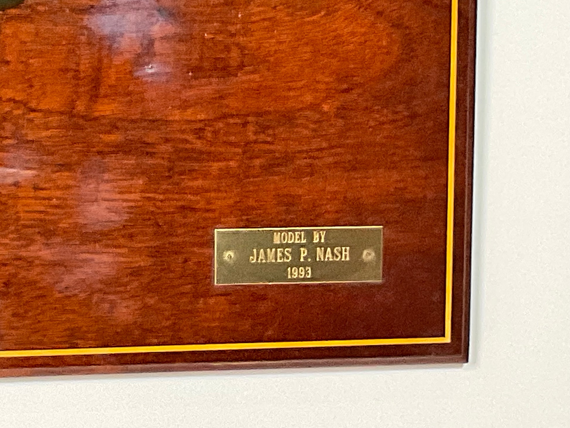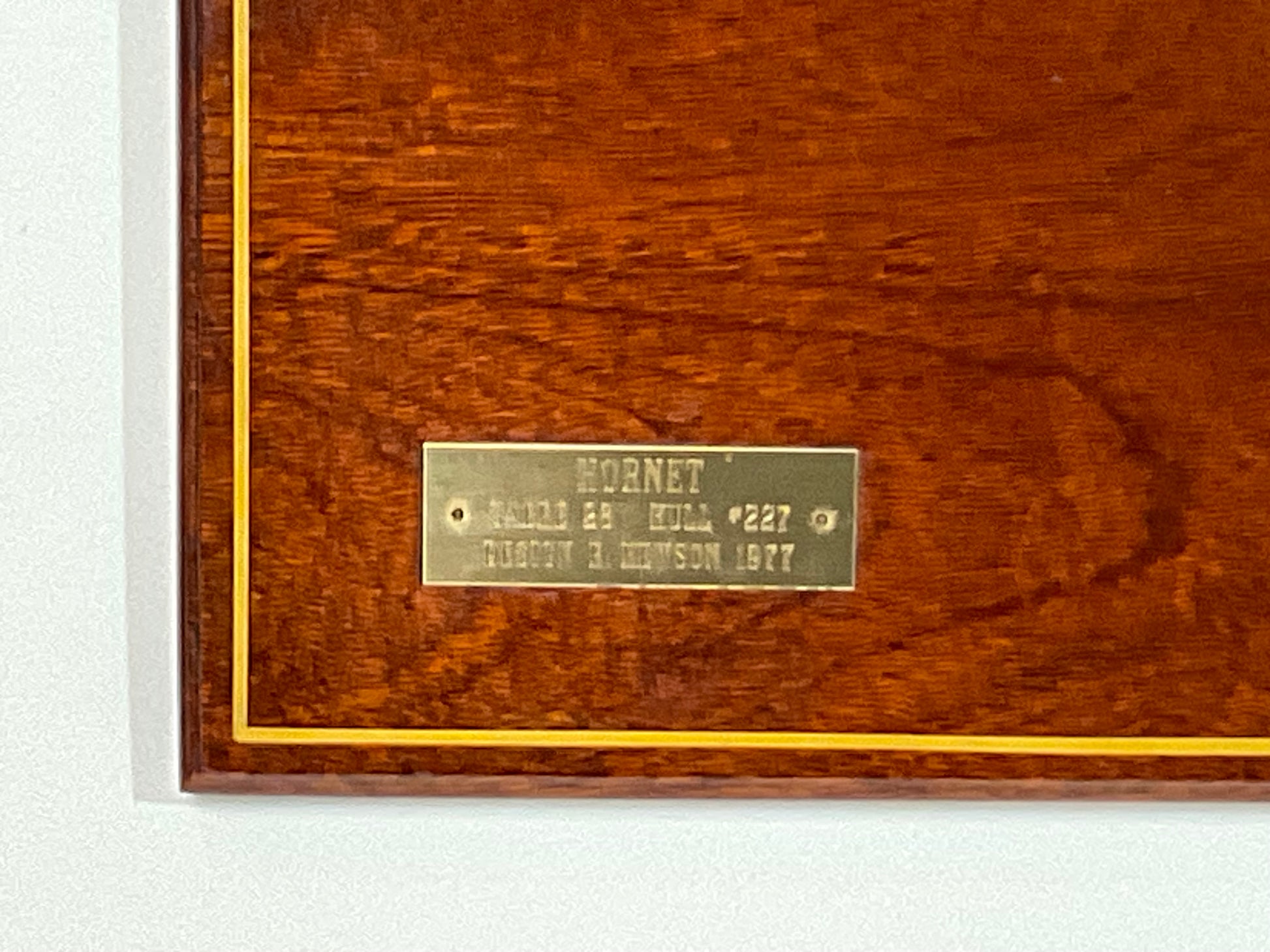 Half model of the sailing yacht Hornet, a Sabre 25, Hull 227. Hull is painted green over black.