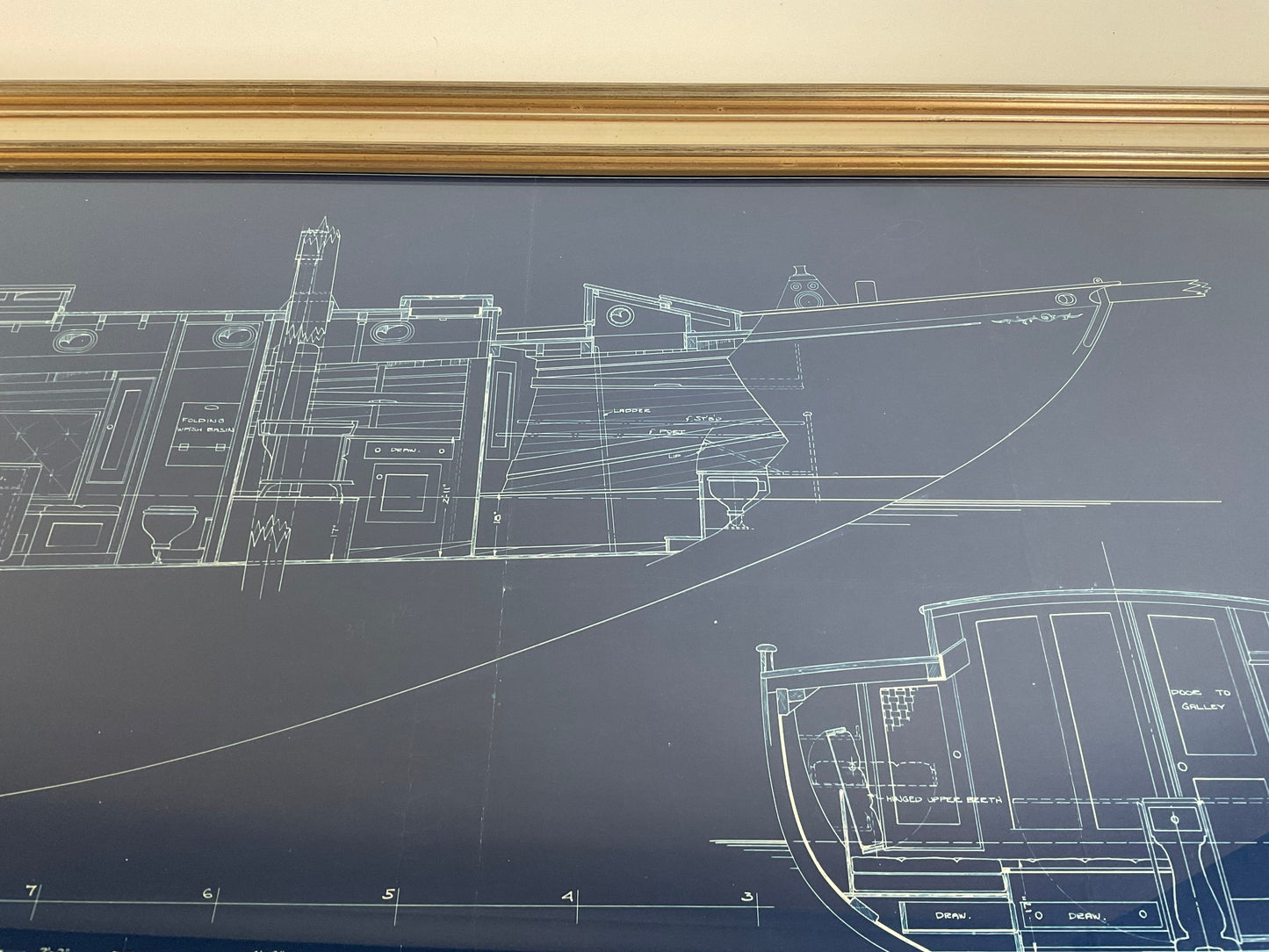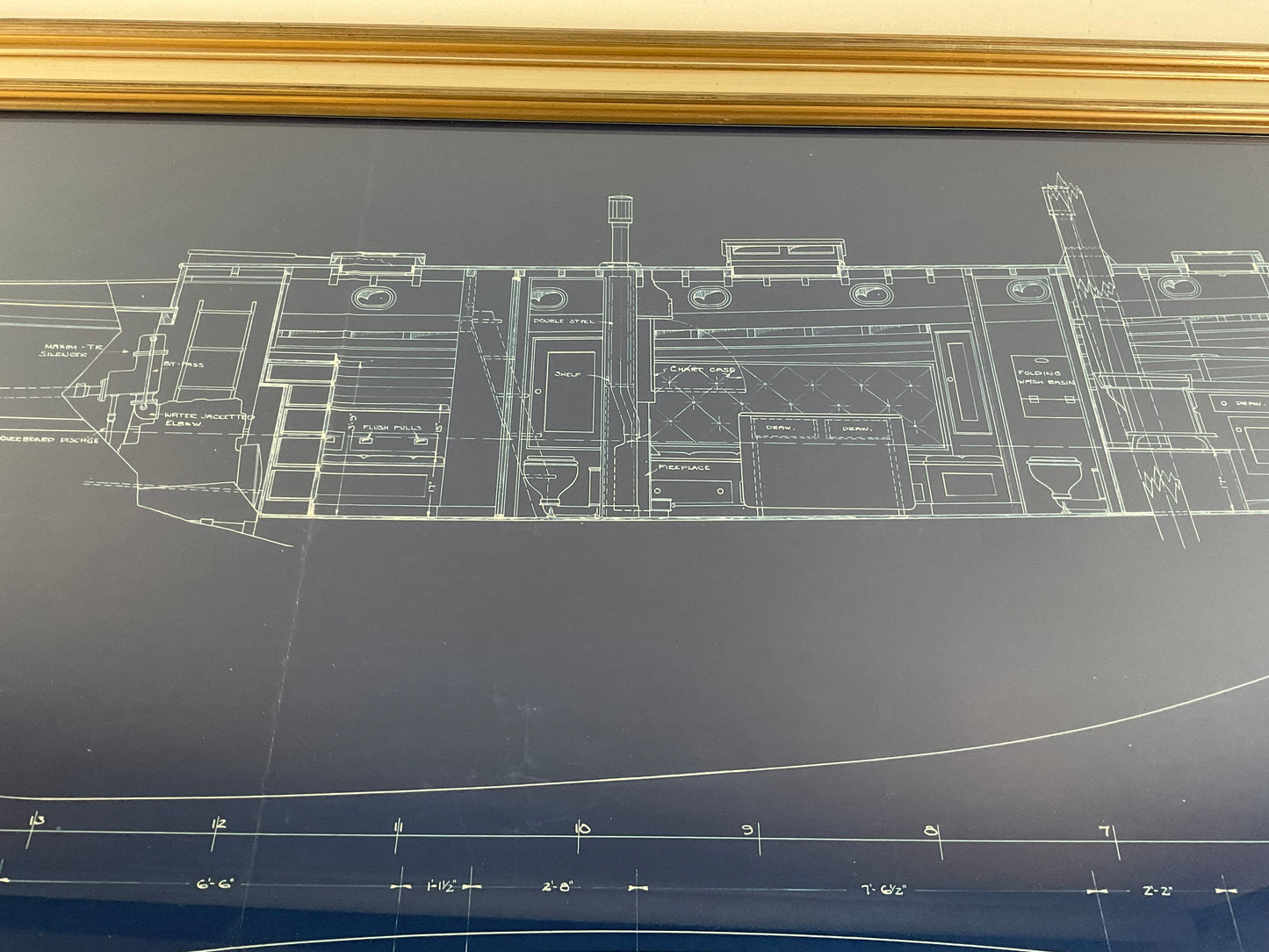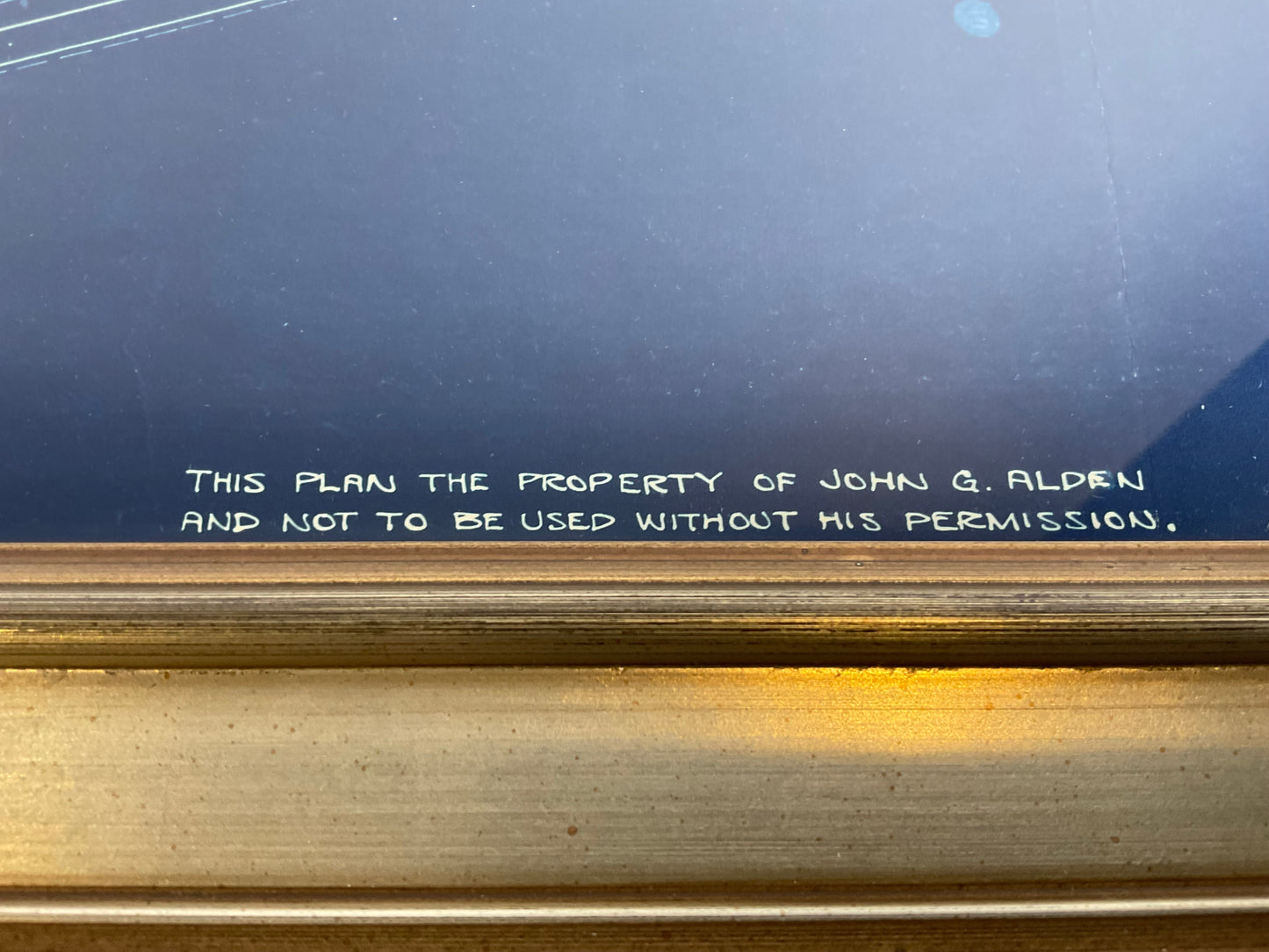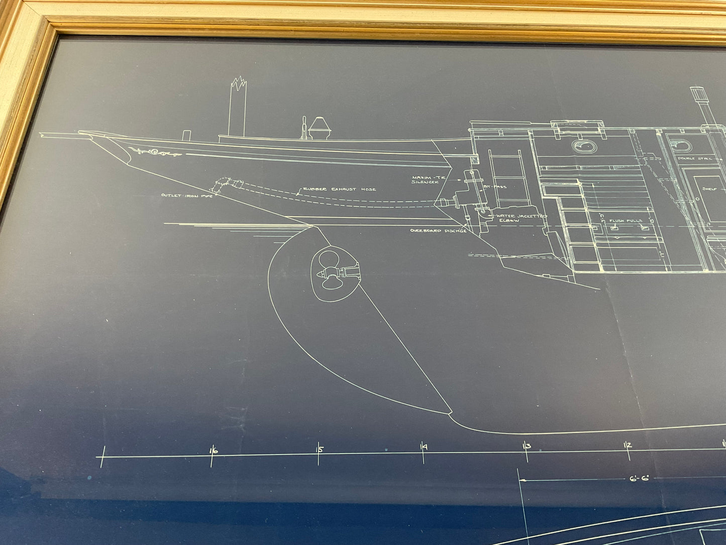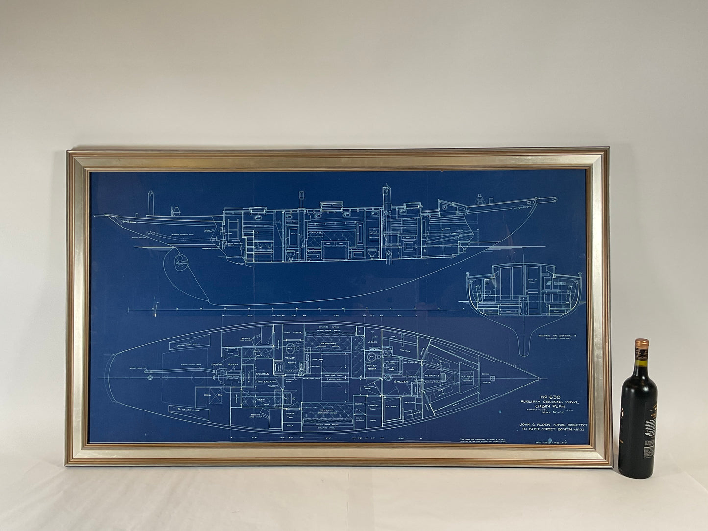 Original construction plan drawing from John G. Alden naval architect of the schooner yacht Evening Star, hull 638. Evening Star was the last yacht built under the eyes of Nathanael Herreshoff, the end of an era. This is a big, beautiful deck plan showing all cabin arrangements. Amazing detail with cabins, double stateroom, berths, head, lockers, chain locker, sail bins, chart case, cabinetry, etc. So much detail. Amazing relic.