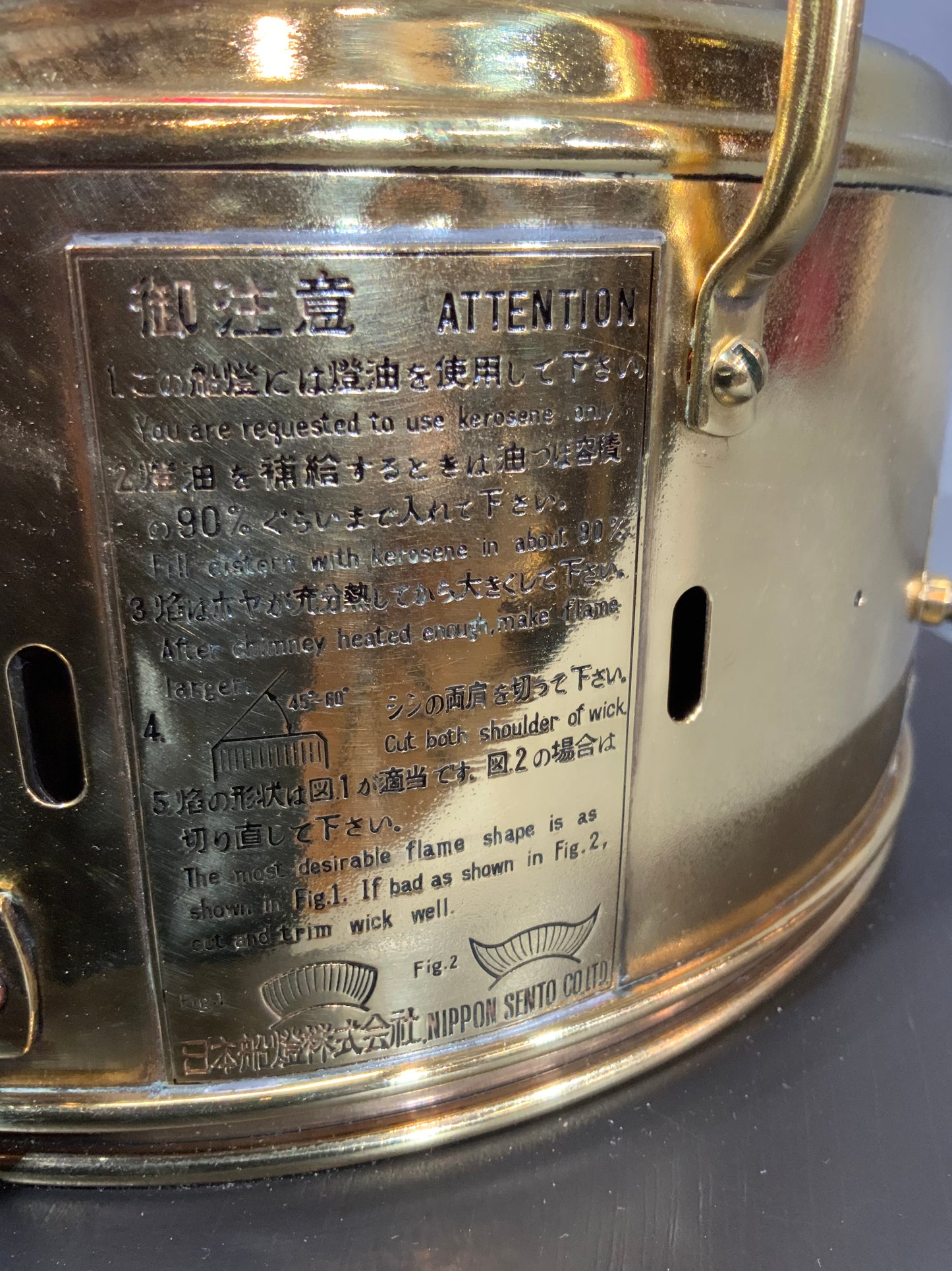 Japanese Ship's Lantern of Solid Brass by Nippon Sento Co. LTD