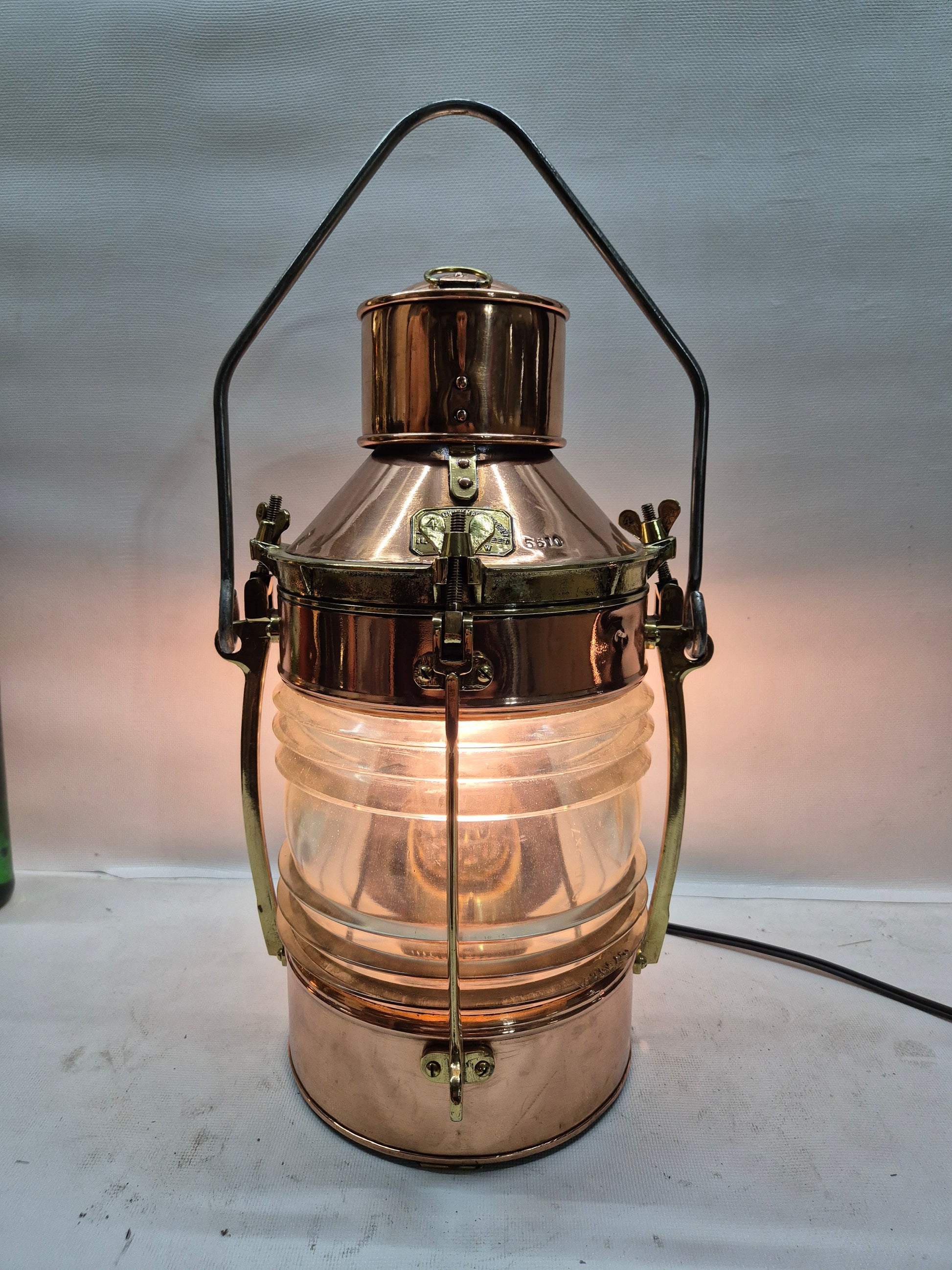 English Ship's Lantern in Copper Case with Two Lenses