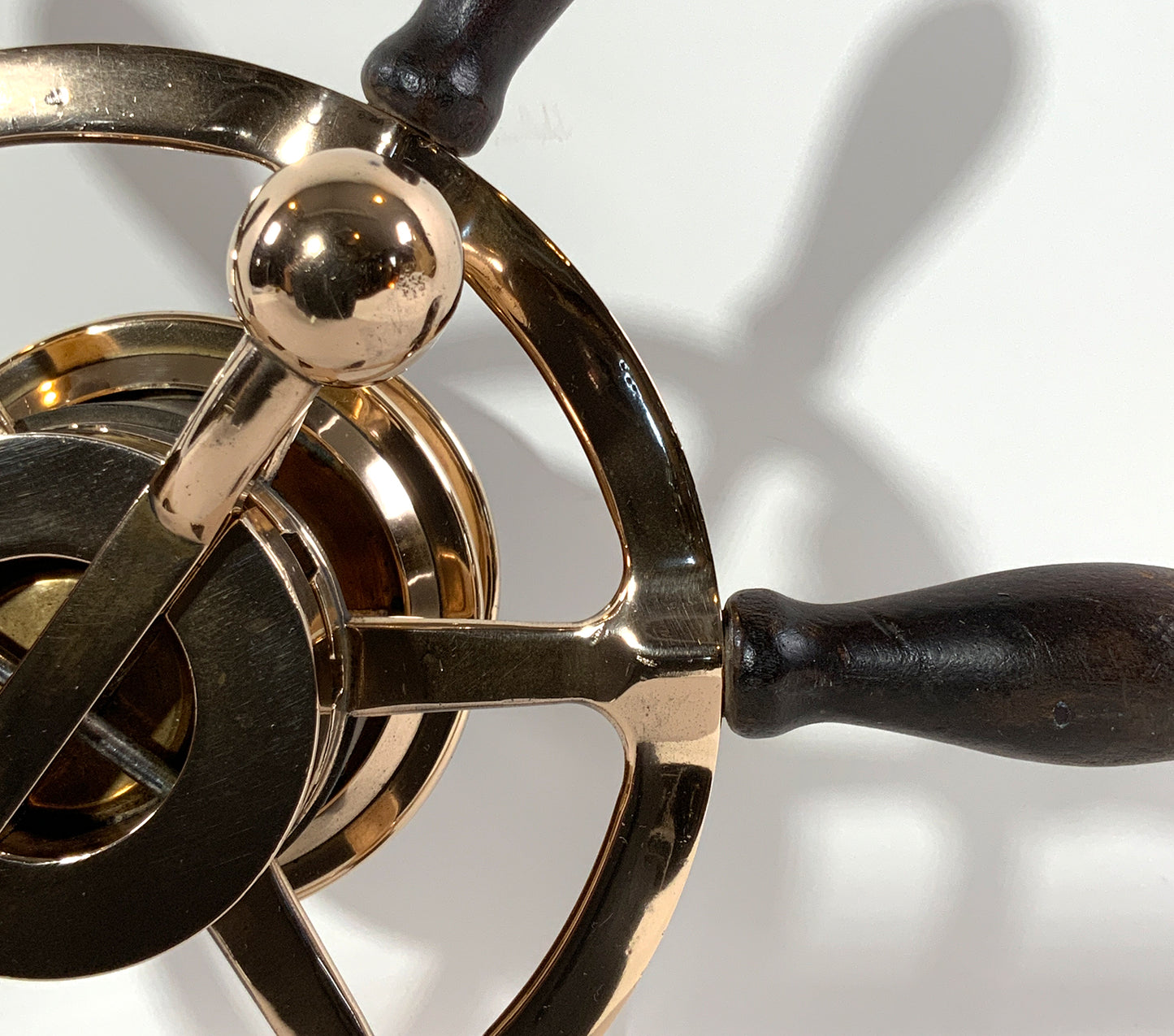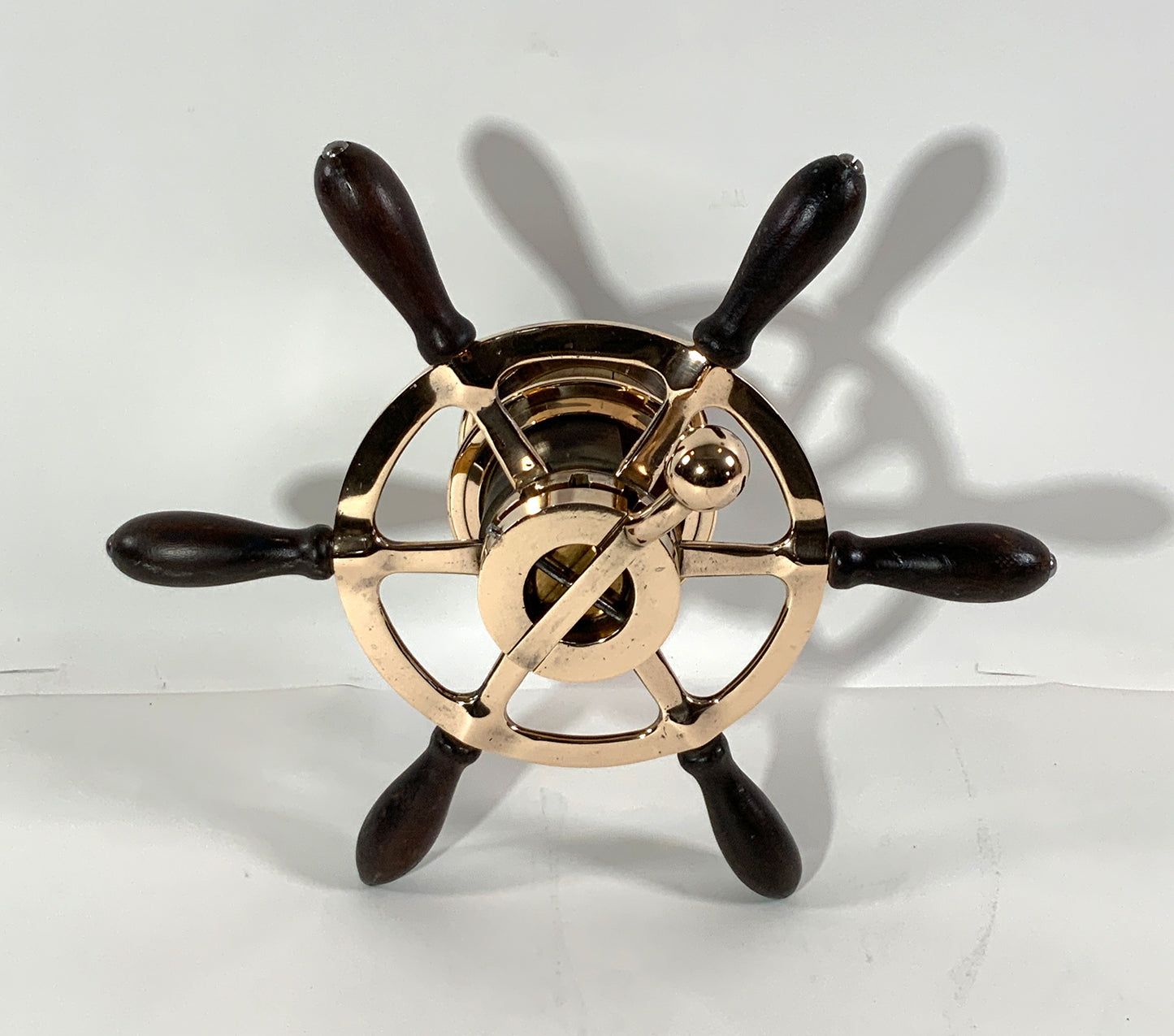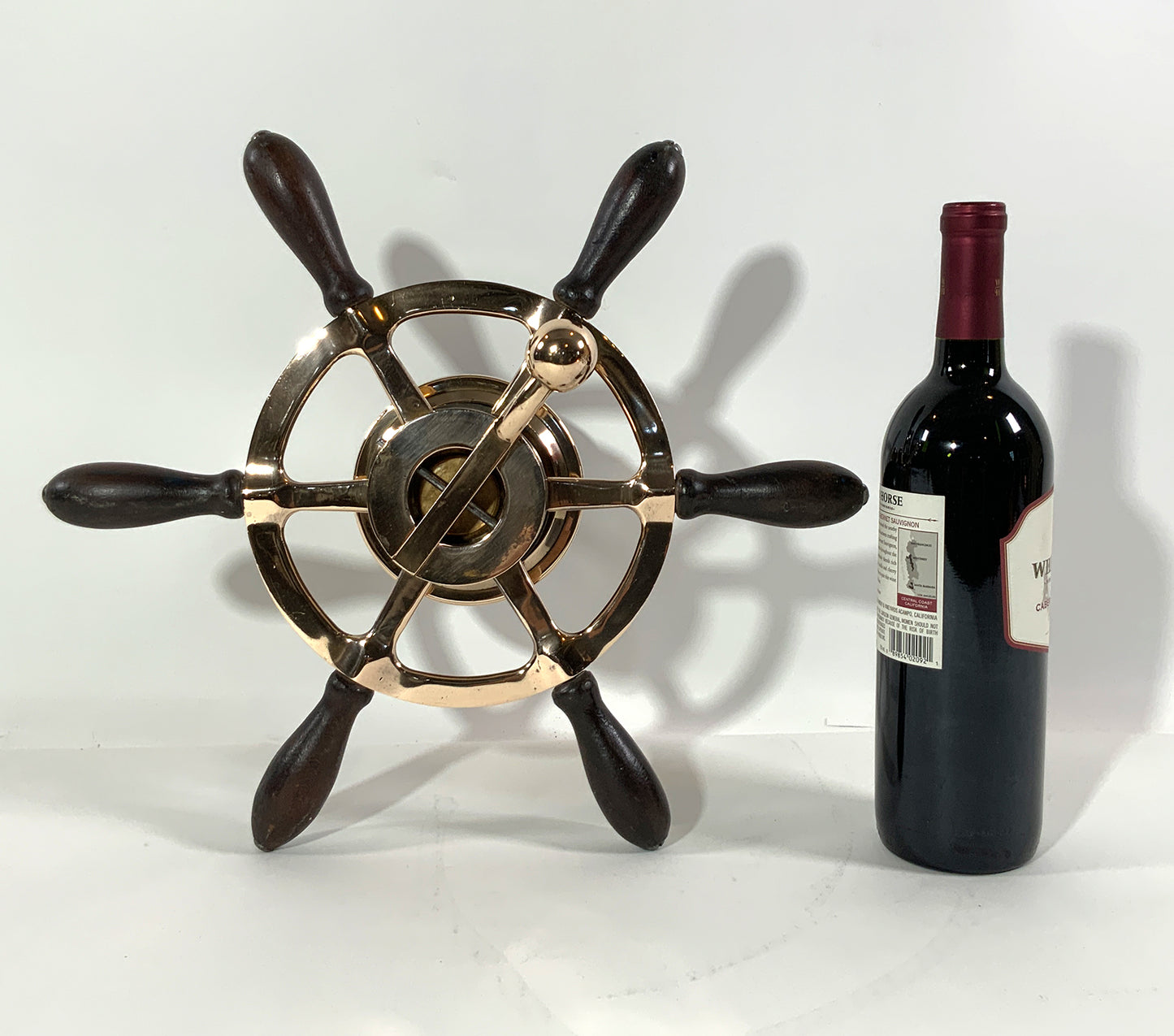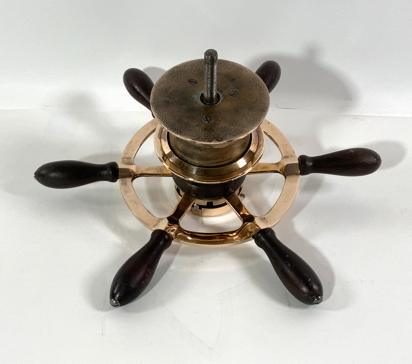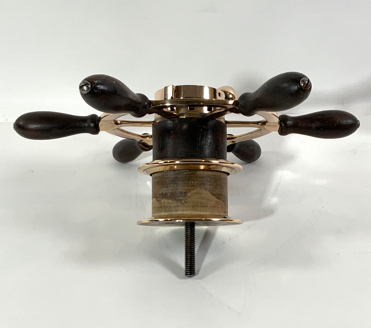 Rare late 19th Century Launch steering wheel with gear lever. Six spoke with wood handles. Highly polished.