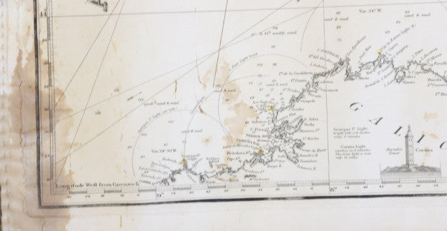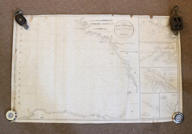 Original J.W. Norie Chart of Bay of Biscay, c.1855