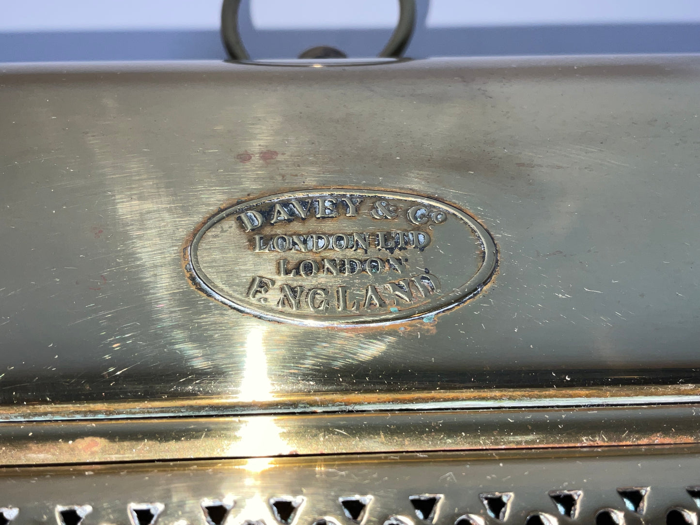 Pair of top quality Davey & Co. ships lanterns. With arched and vented tops, carry handles, beveled glass, hinged doors, burners, etc. Fitted with makers badges reading "Davey & Company LTD, London, England." As fine as they get.