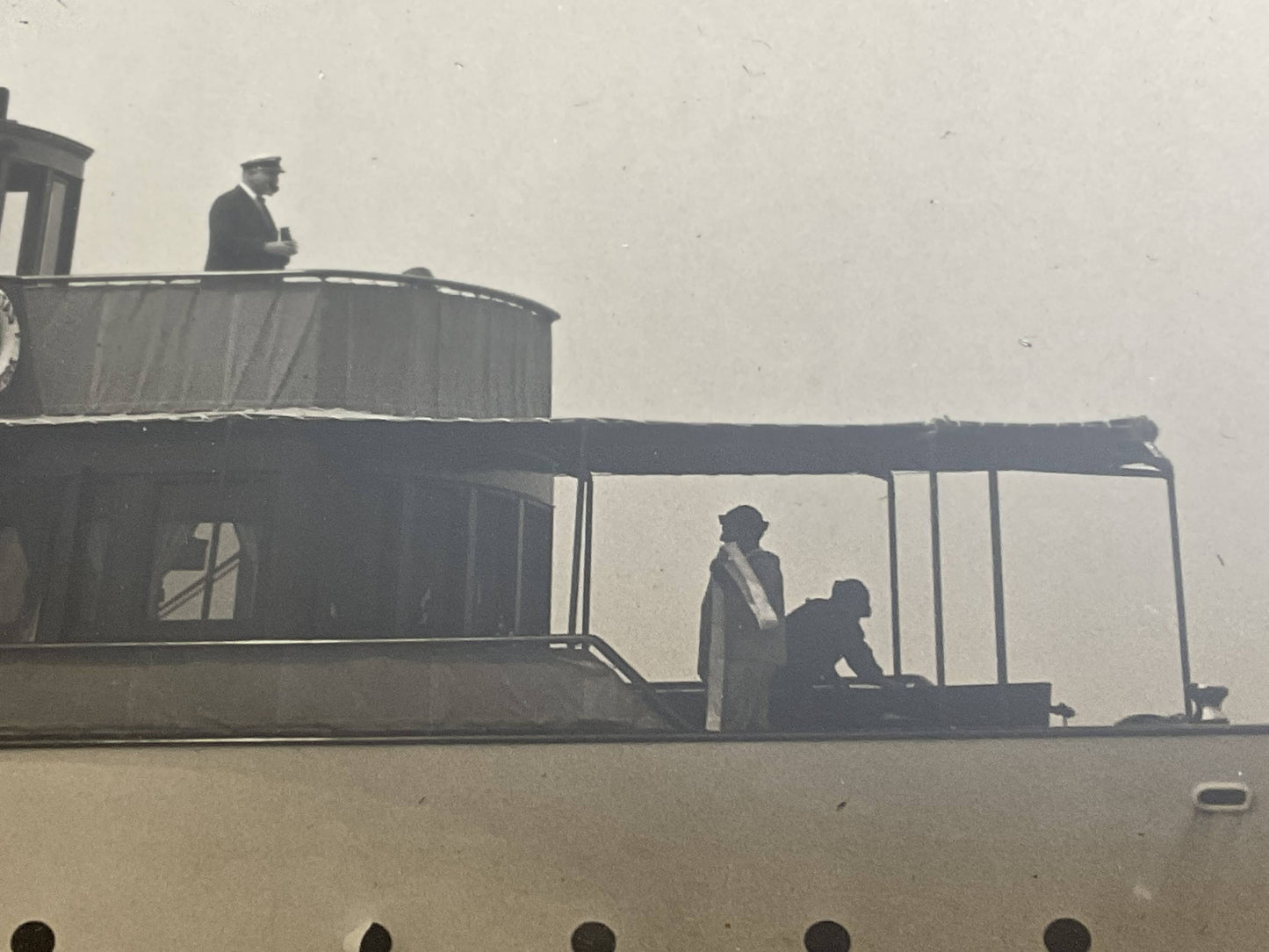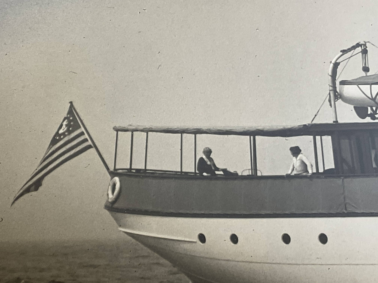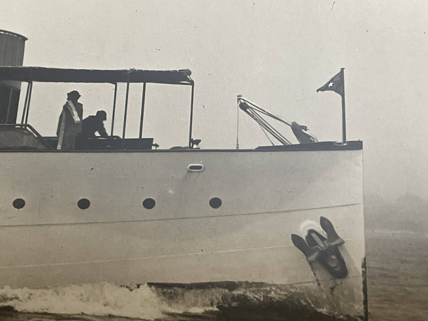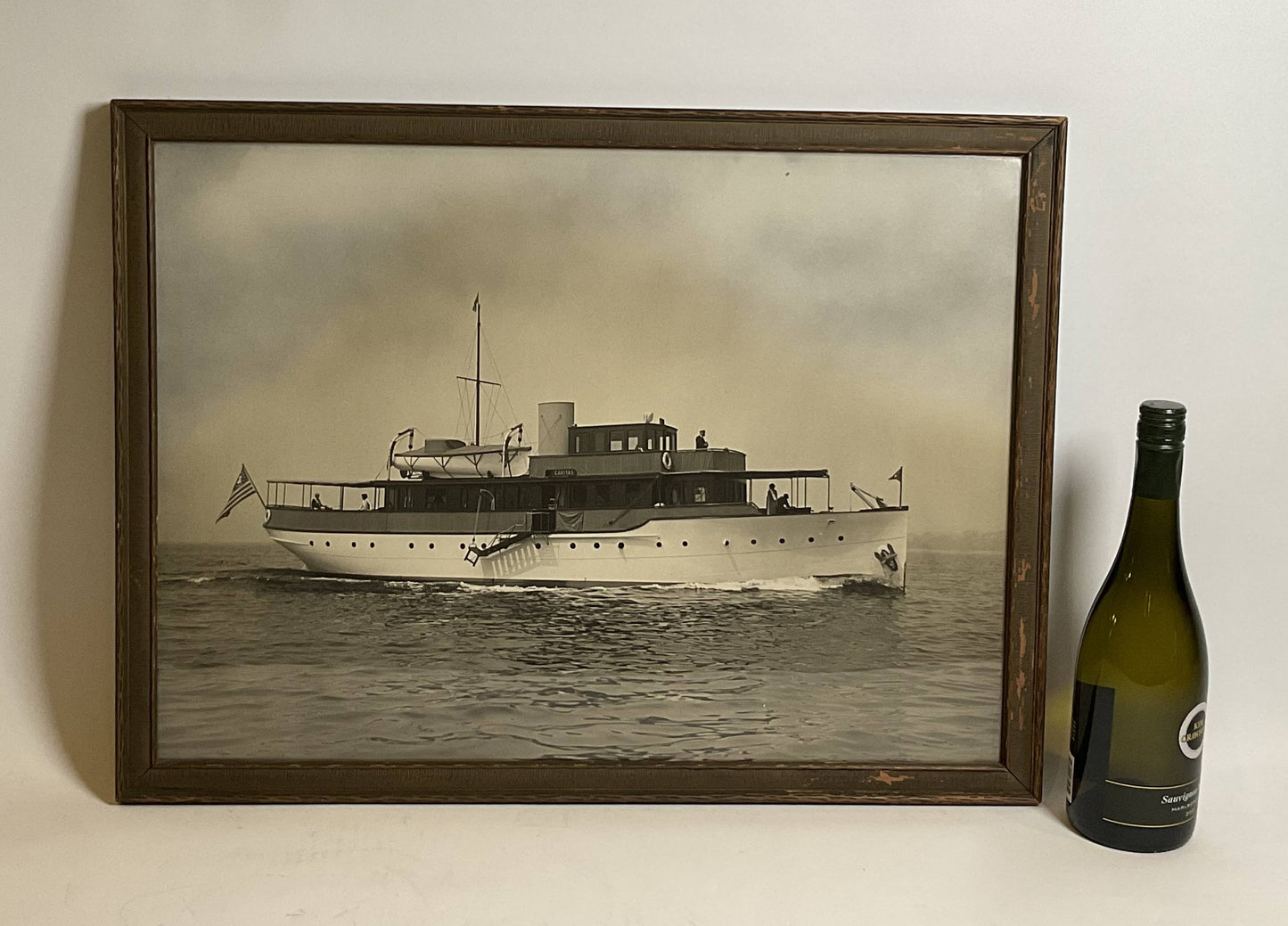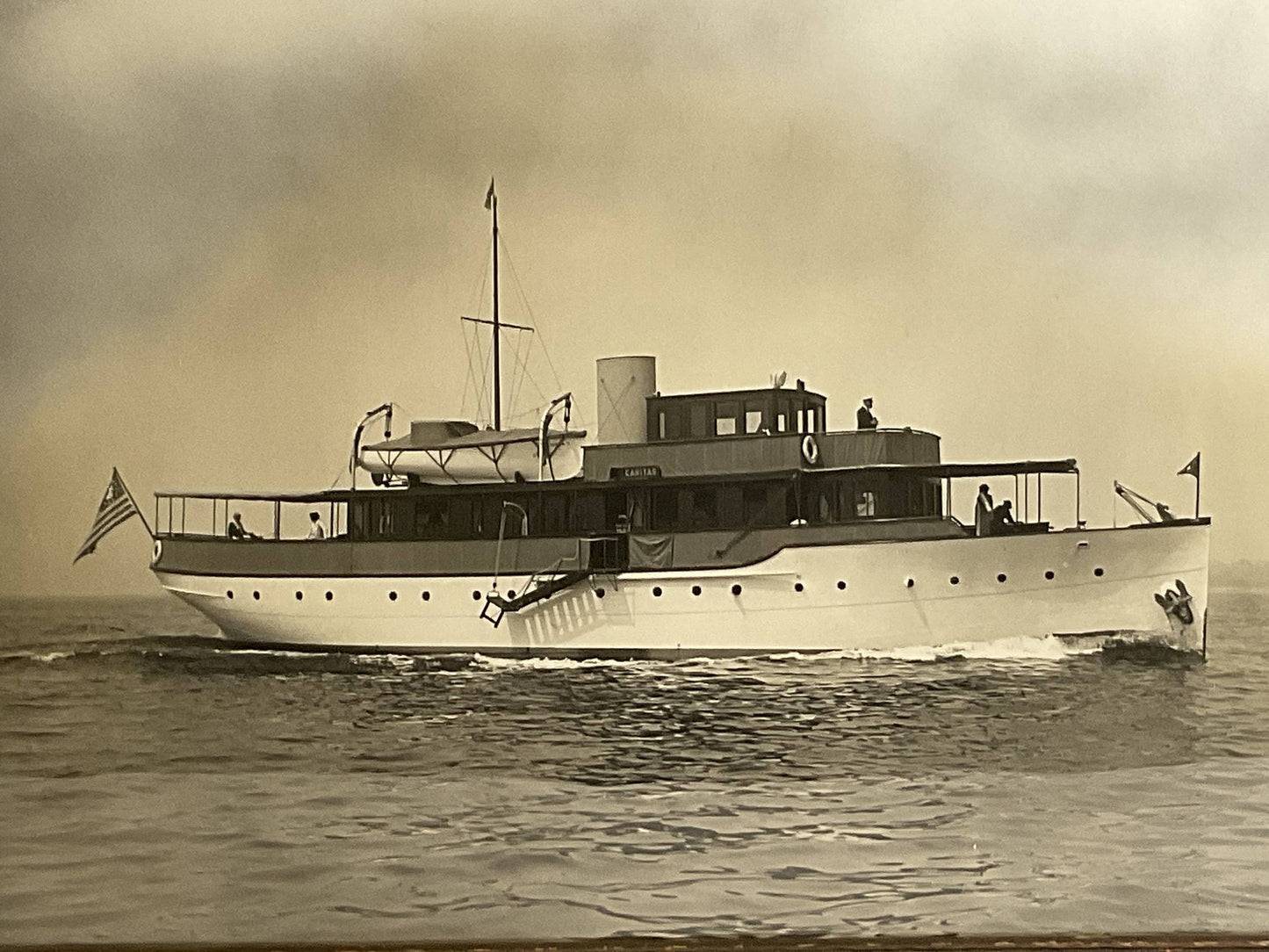 Early twentieth century photo by Edwin Levick of the Lawley Built Yacht “Caritas”. Caritas was a 112 foot private power yacht constructed at George Lawley and Son, Neponset Mass. Homeport was Caritas Island in Bridgeport Connecticut. She was built for Sugar Magnate J. Percy Bartram, member of the New York Yacht Club. Detailed photo, quite clear, showing six onboard. Signed lower right Edwin Levick.