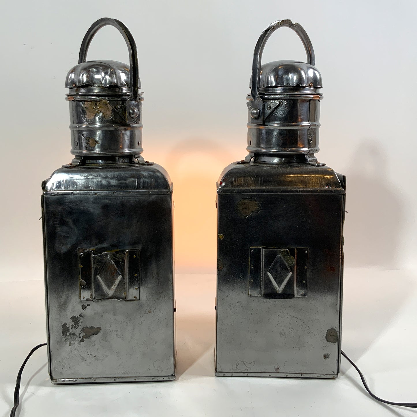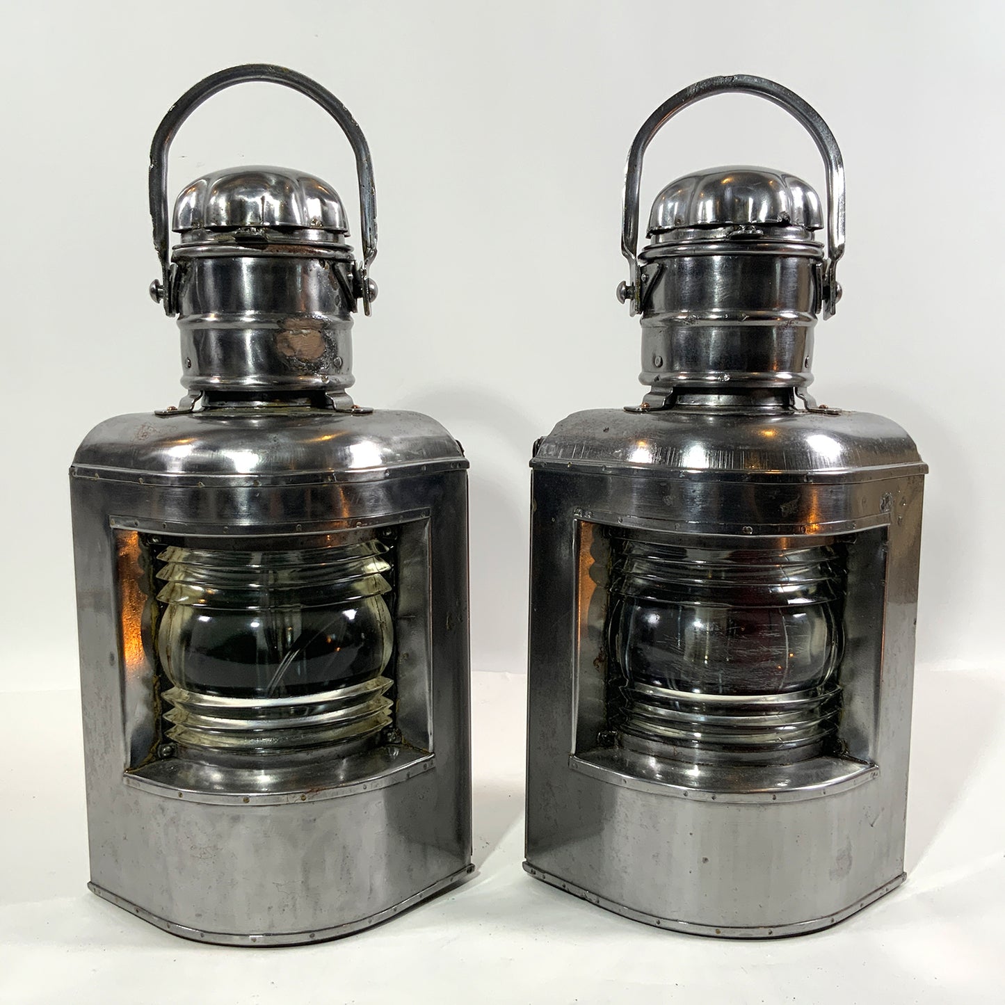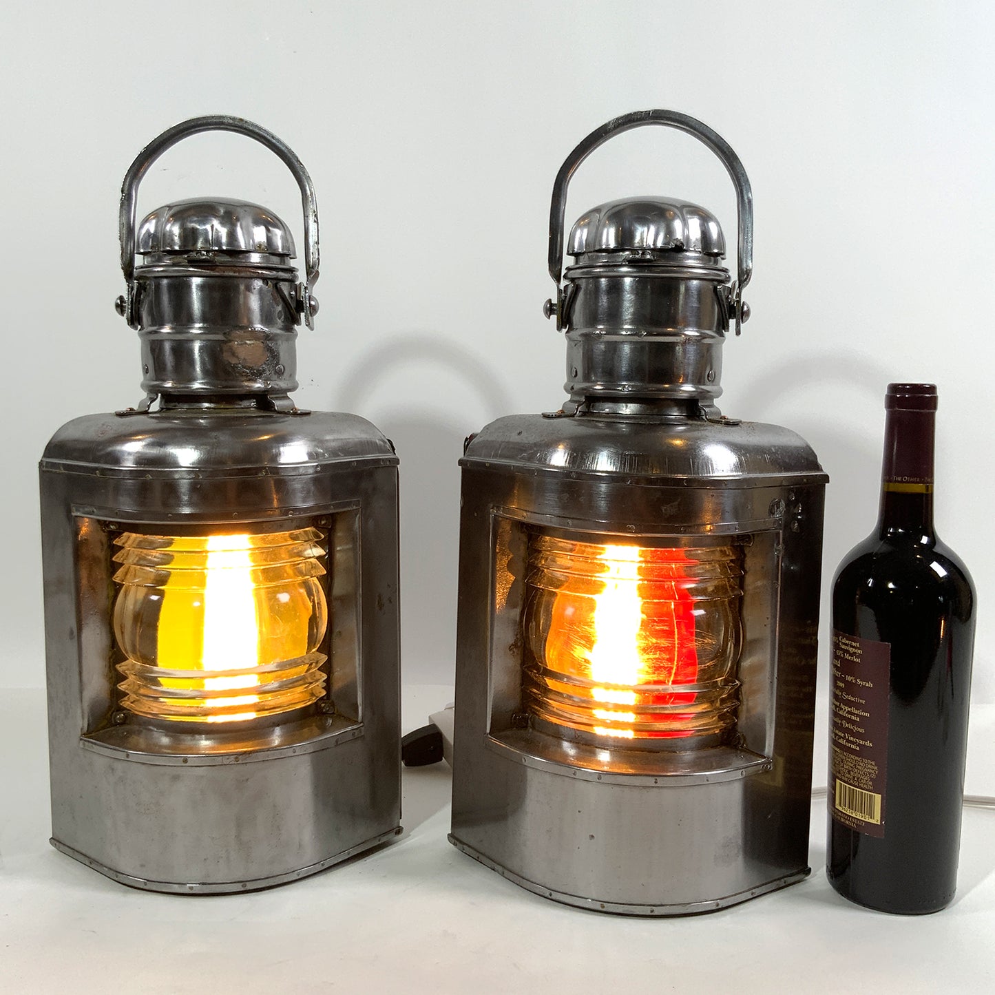 Port and starboard ships lanterns with Fresnel lenses. Vented tops, carry handles and sliding rear doors. Recently rewired for home use. Very clean. Both have clear lenses with no red or green filters.