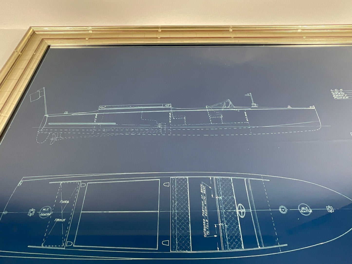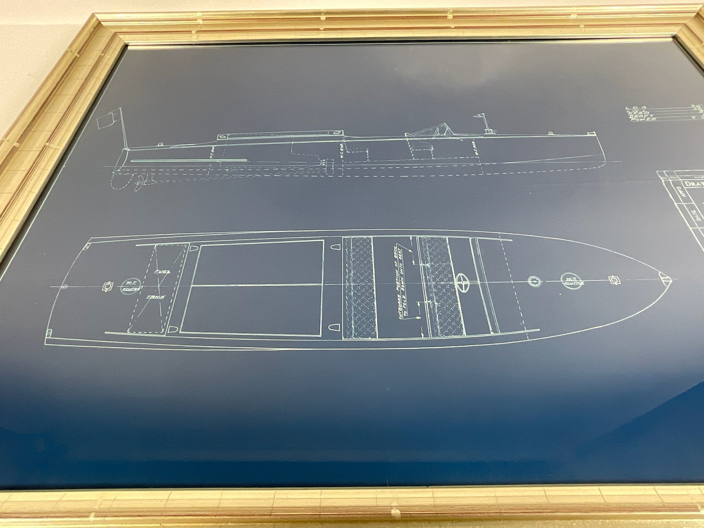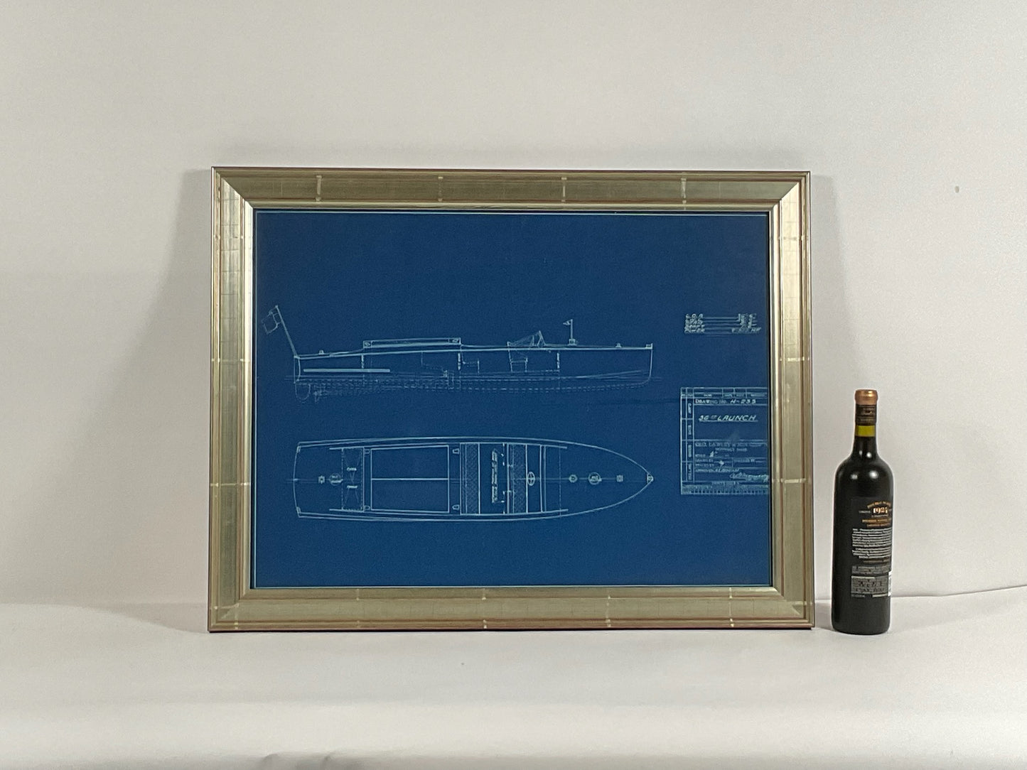 George Lawley blueprint of a thirty six foot launch. The legend shows drawing H-233, 36 ft. launch, one half inch to the foot. George Lawley and Son Corporation, Neponset Mass. Approved 23 September 1931. A Morrisey, Chief Draftsman. L.O.A. 36' 6", L.W.L. 36' 0", Beam 8' 6", Draft 1' 6", Power 2 - 325HP. This is amazing polder for the day.