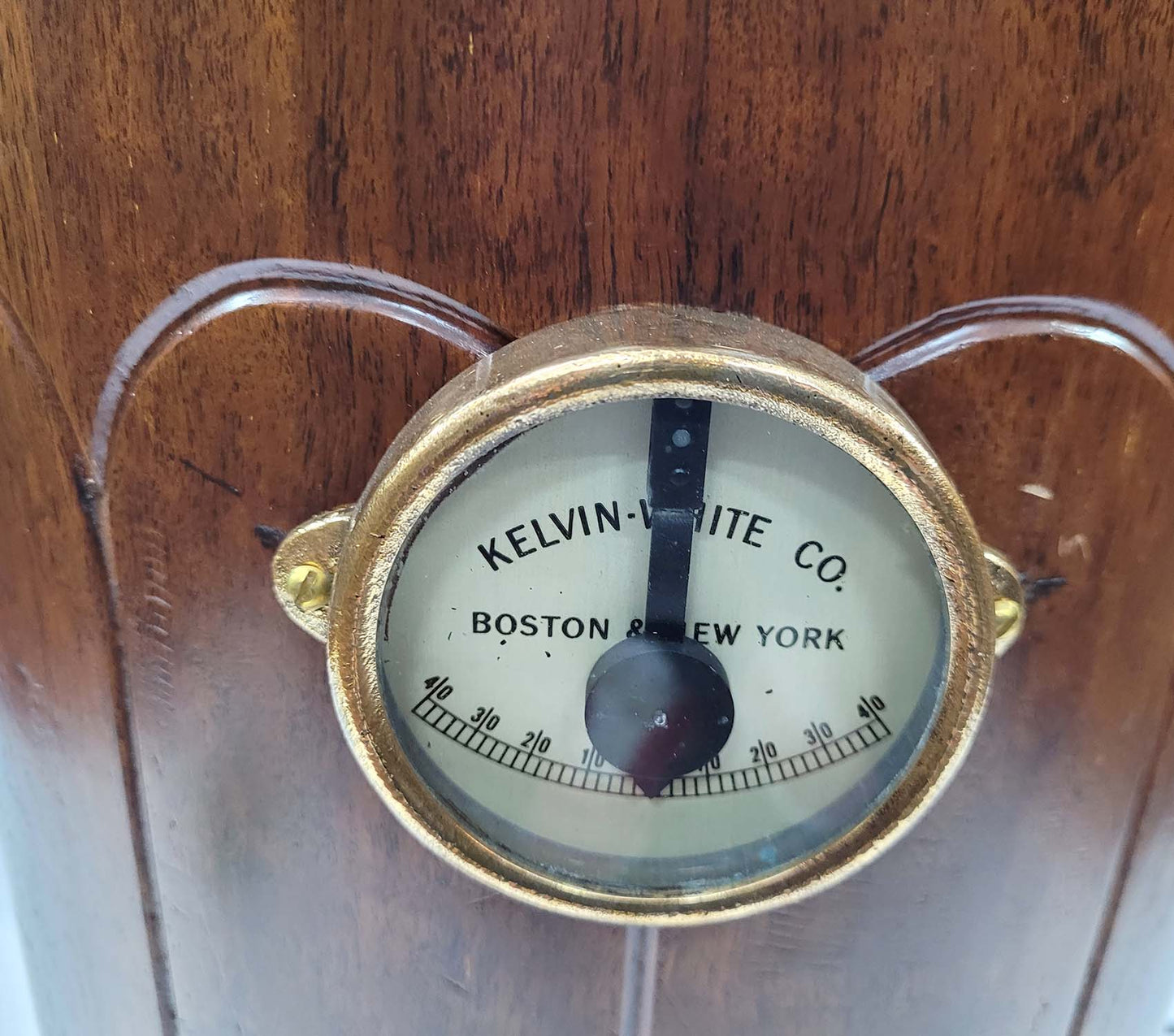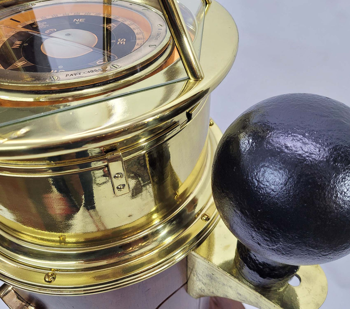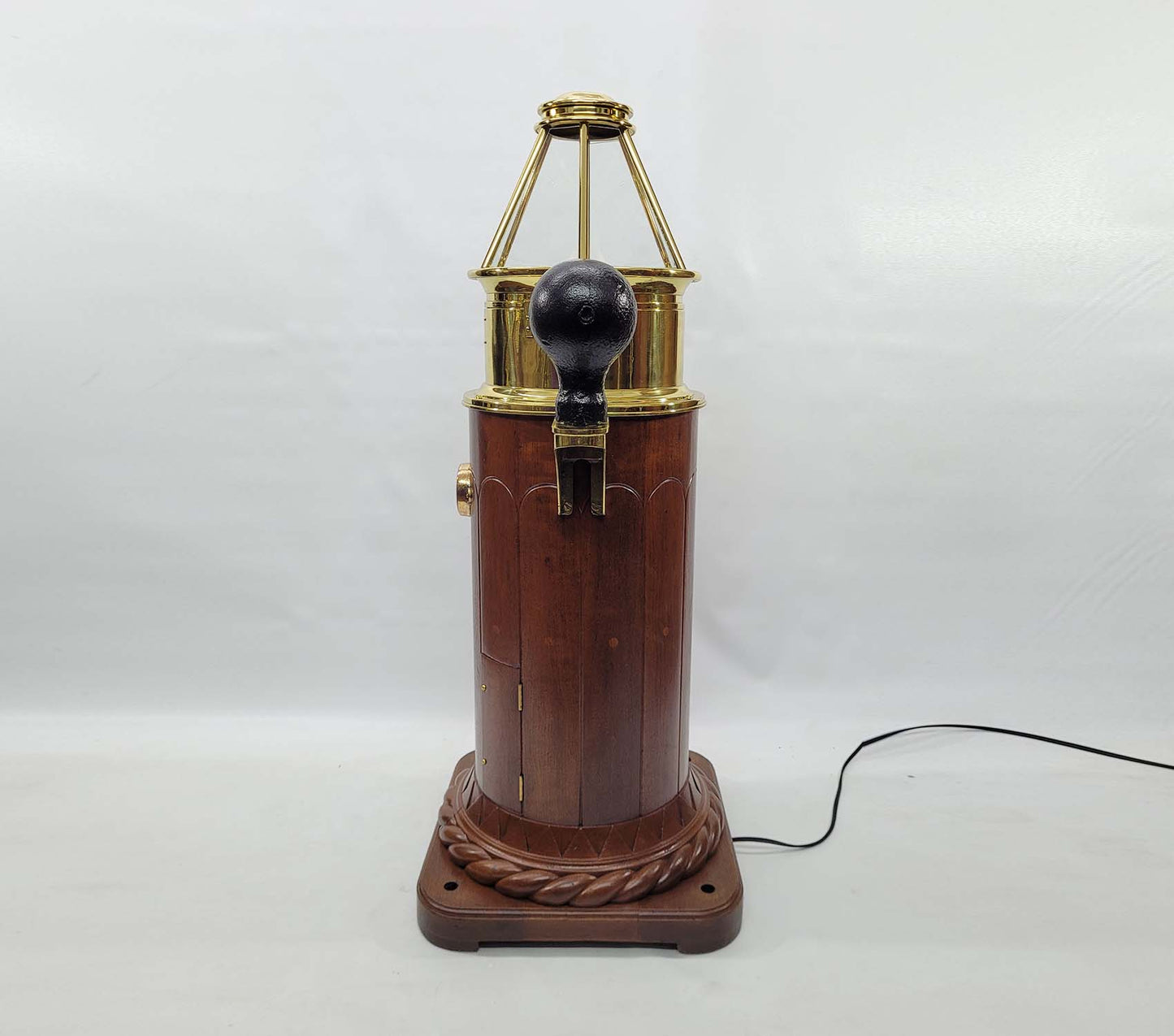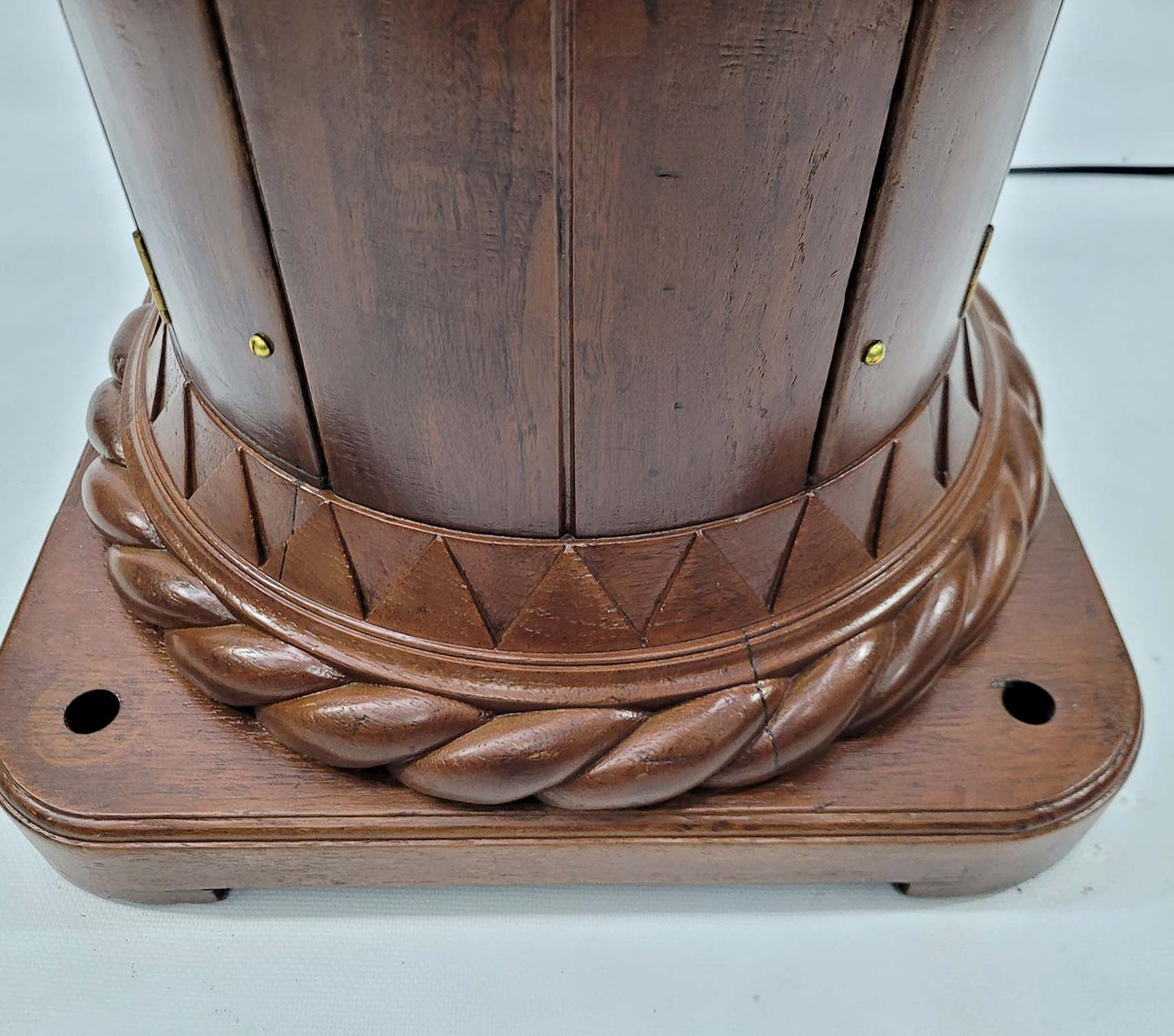 Fine early 20th Century Skylight Yacht Binnacle. Amazing wood base with intricate rope carving and varnish and varnish finish. The six-sided Skylight top houses. A gimballed Compass. Iron compensating balls are mounted to brackets.