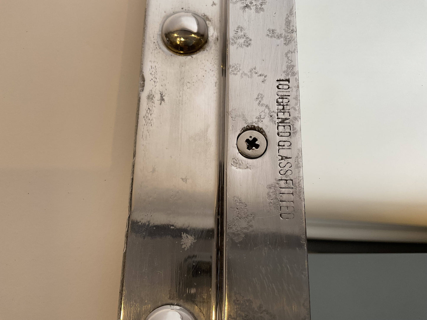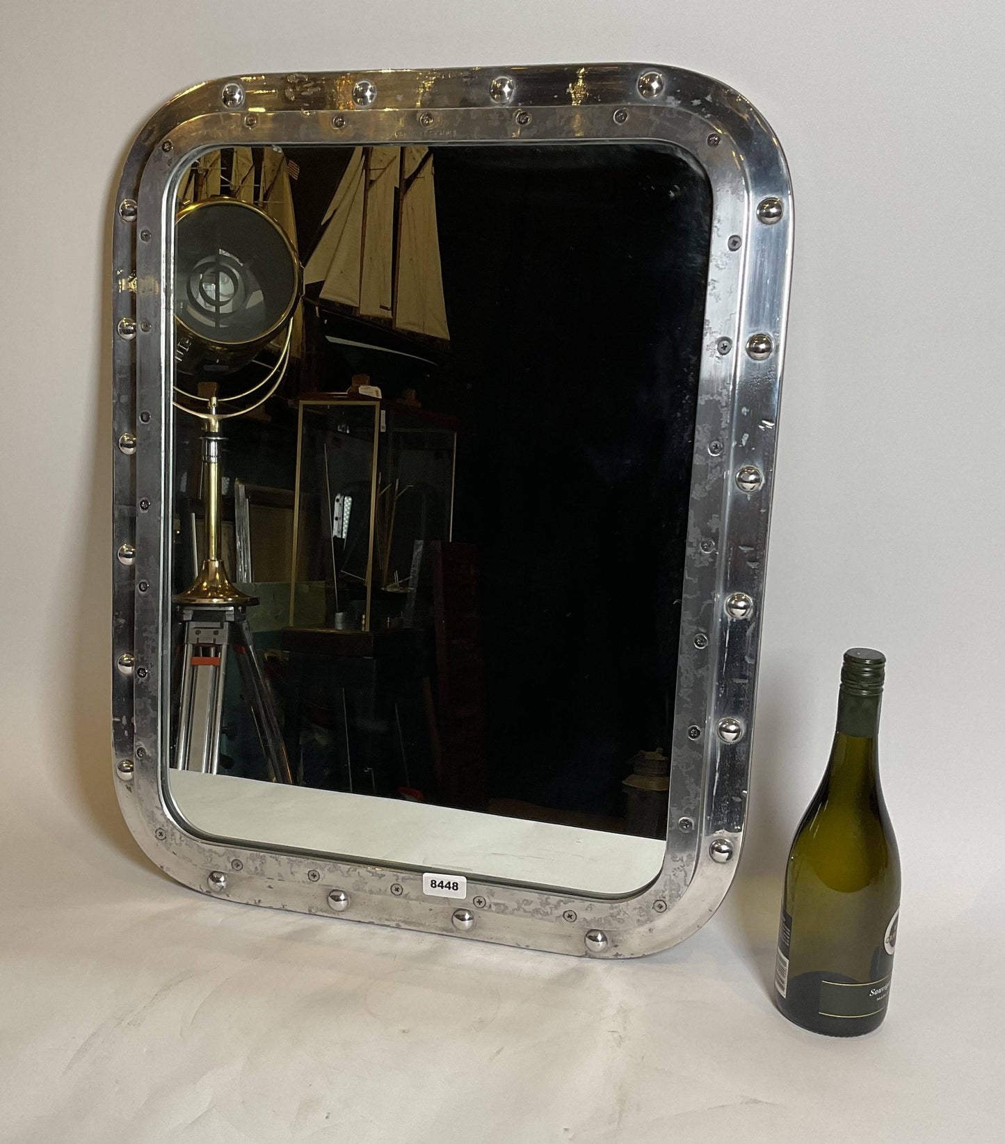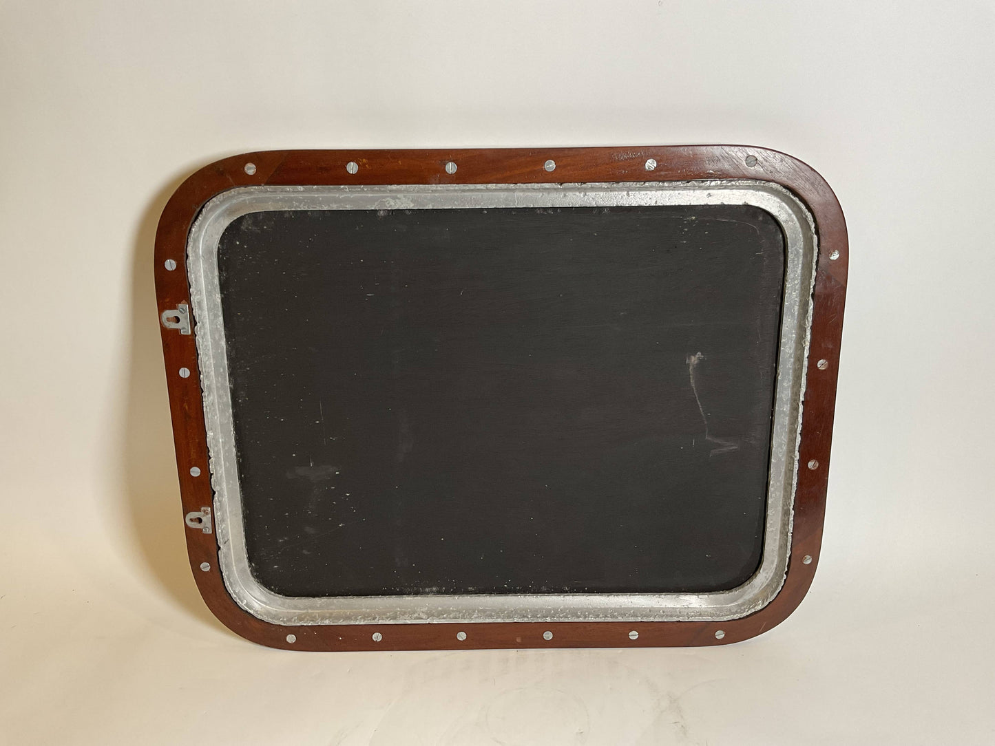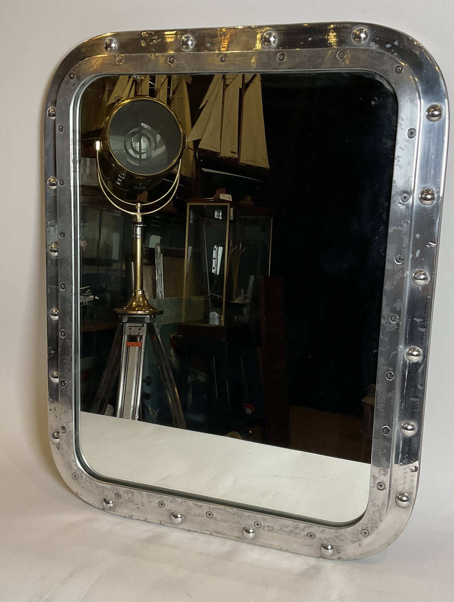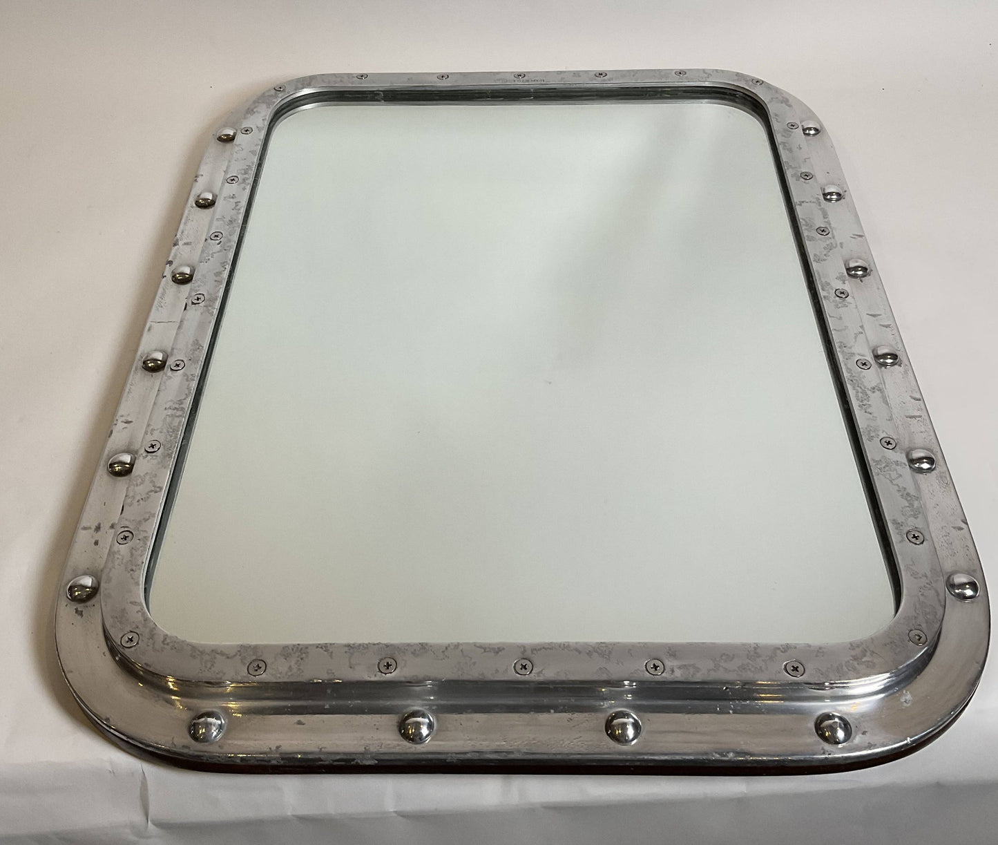 Ships porthole converted to a mirror. Ships porthole with aluminum frame, teakwood backing, and custom mirror. Great nautical relic. 25lbs. 29"Hx22"W