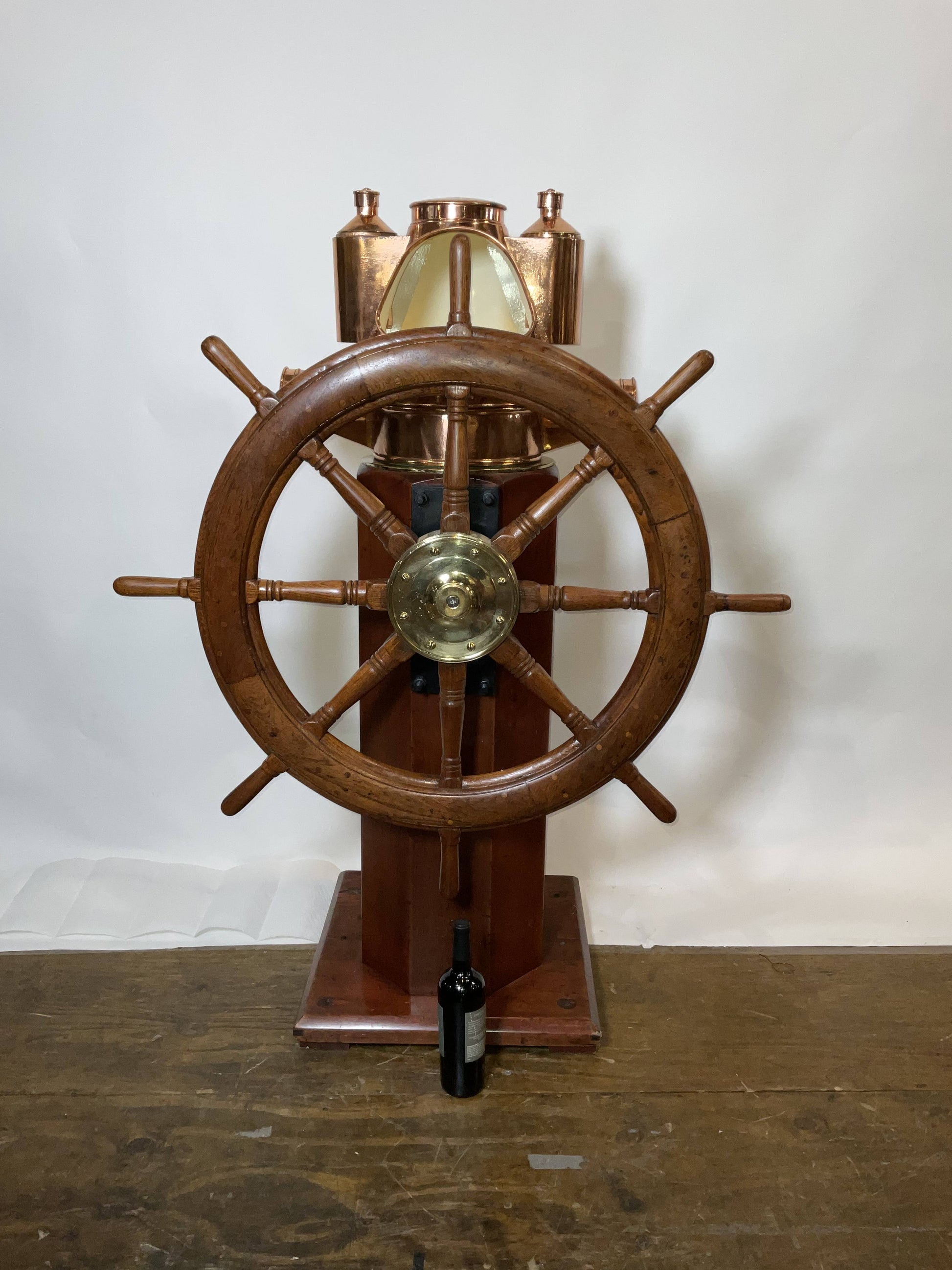 Outstanding Ship's Binnacle Mounted with a Ship's Wheel