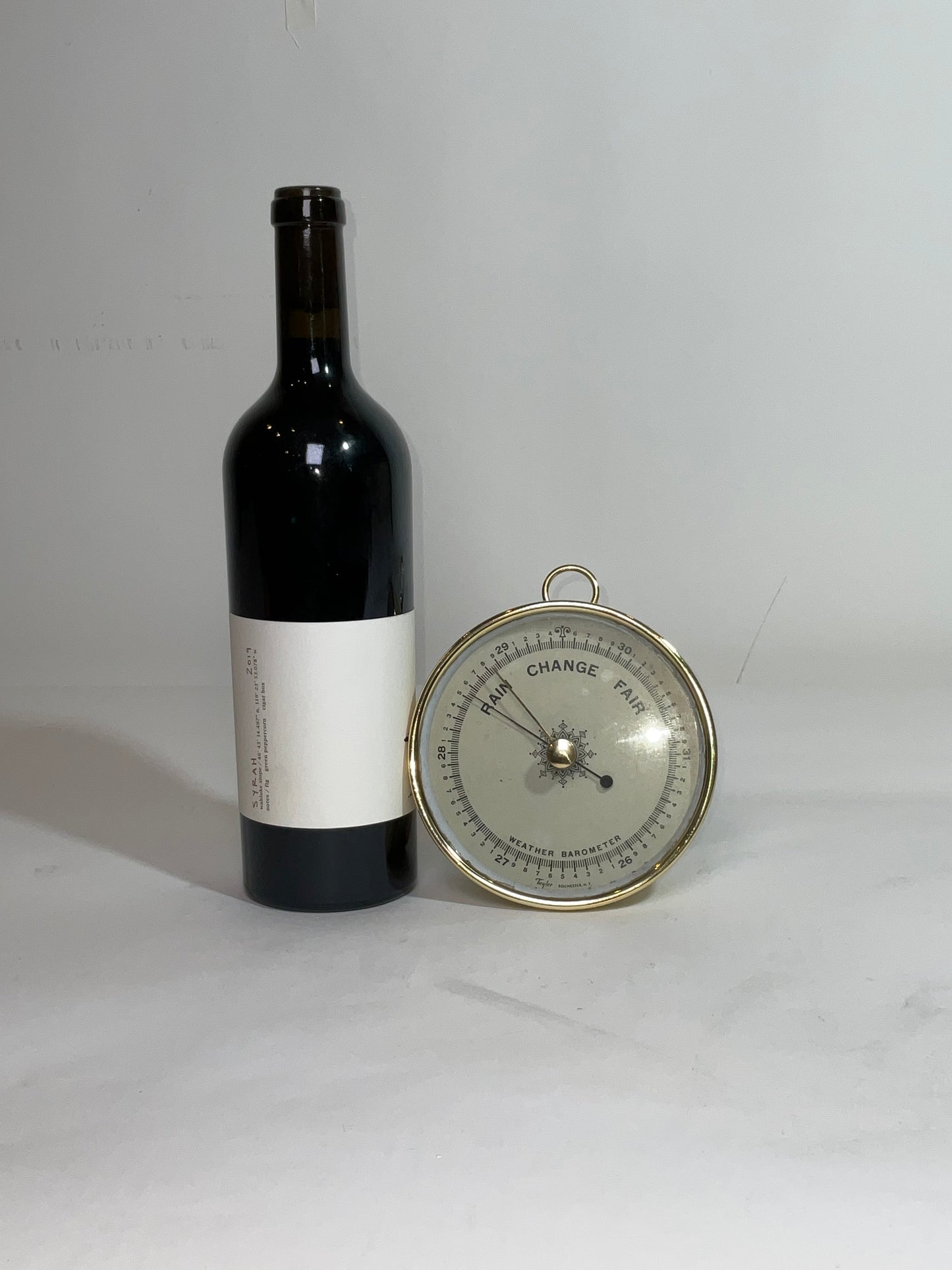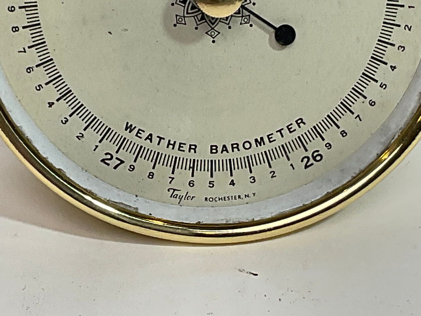 Highly polished and lacquered barometer by Taylor of Rochester, New York. Circa 1930, with set needle and brass reading needle.