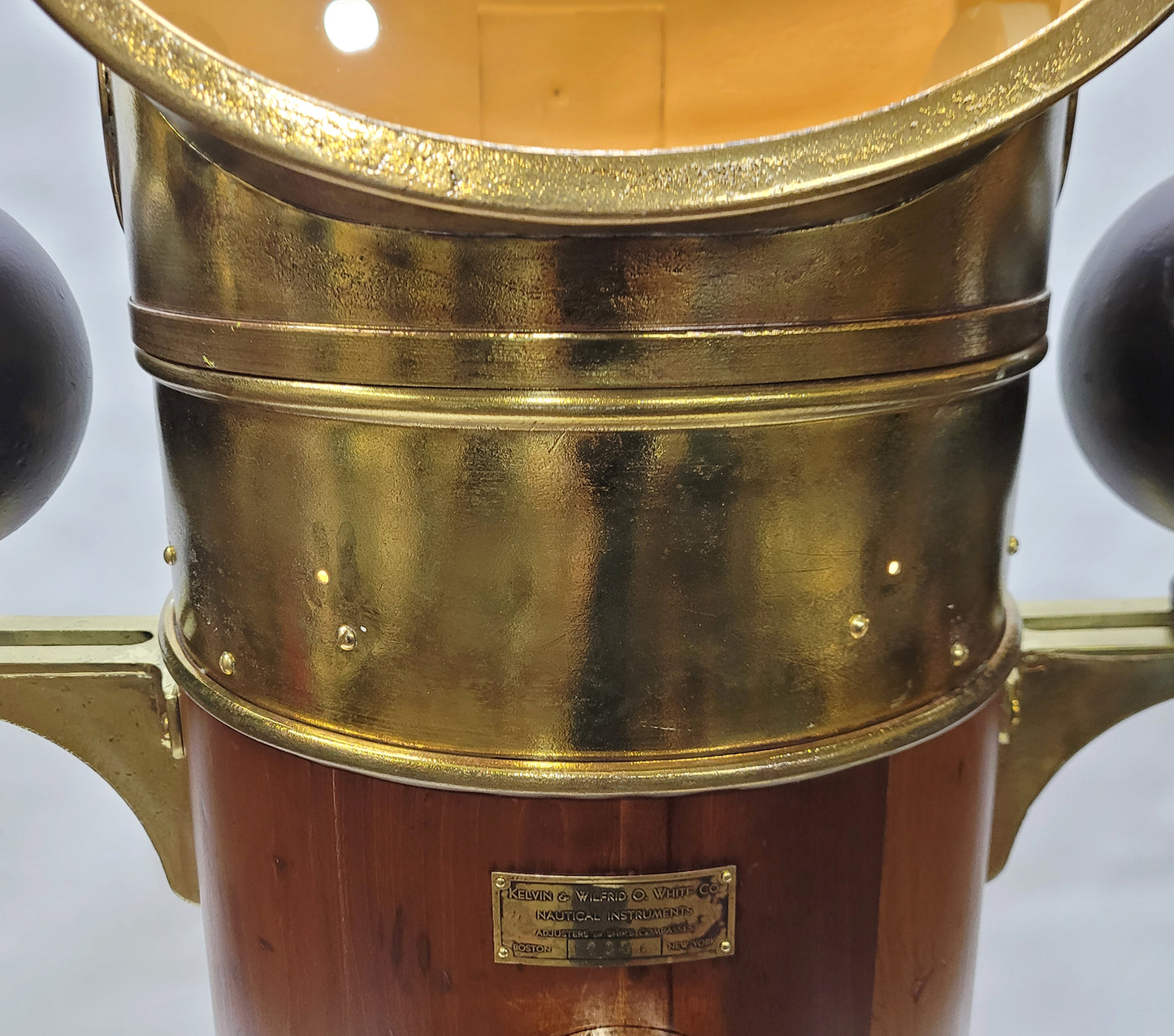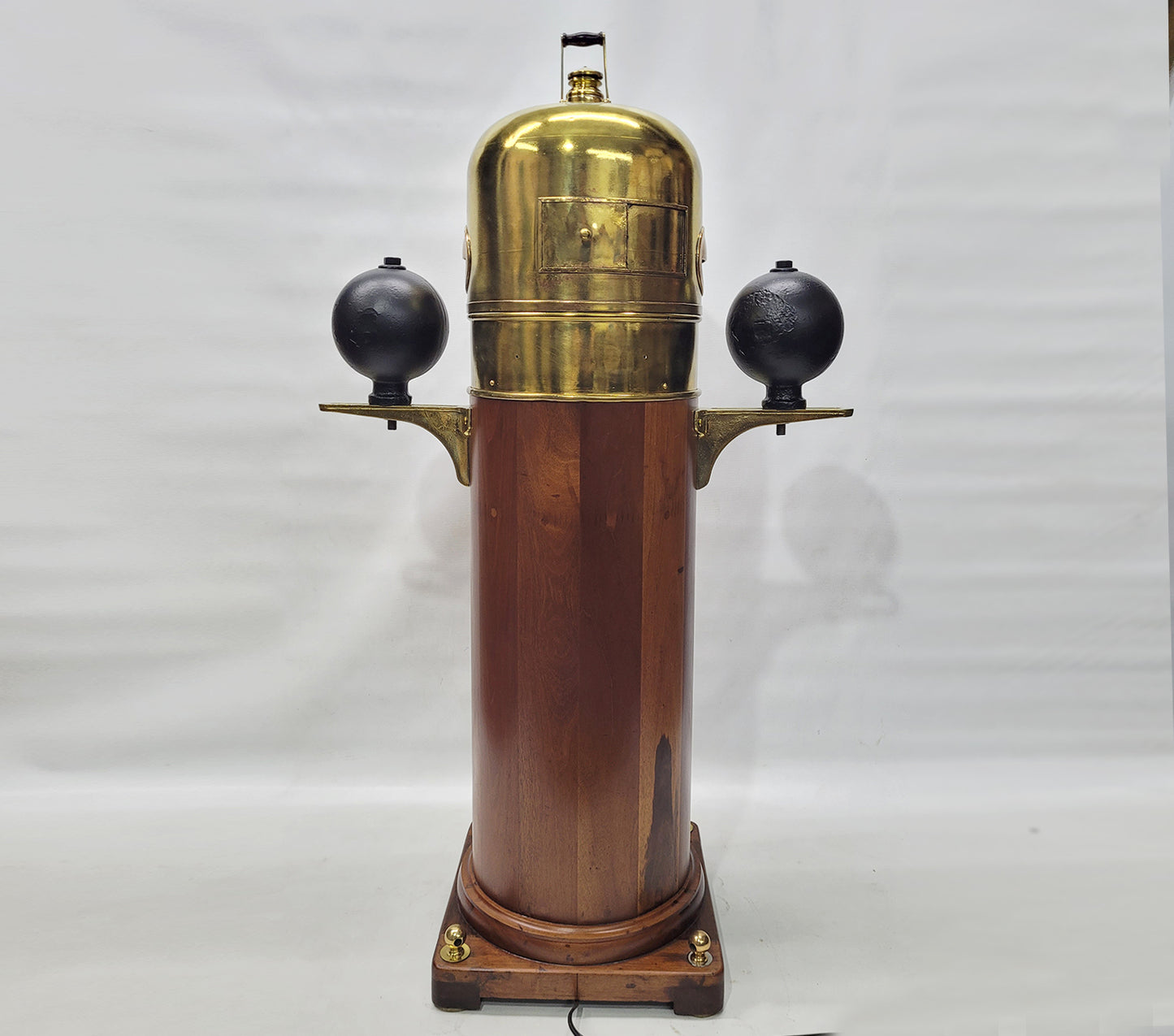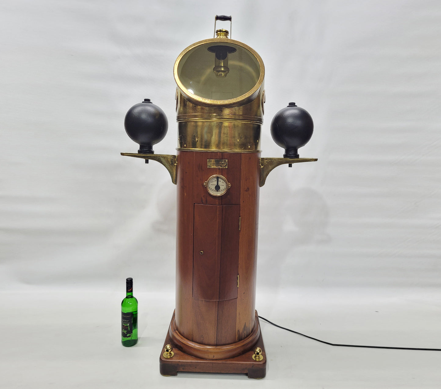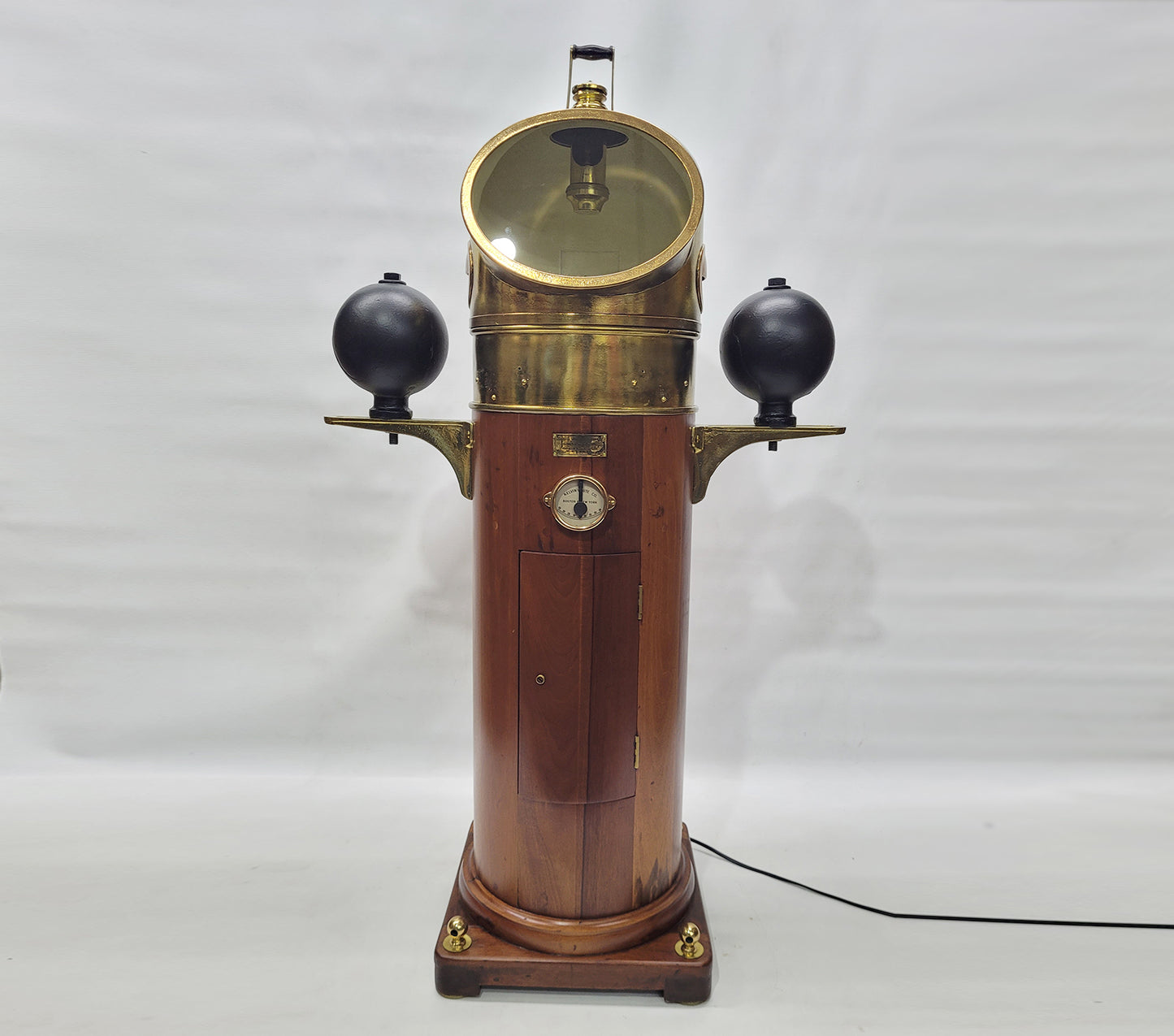 Five brasses have been meticulously polished and lacquered. Warm Lighting has been installed inside. A lantern housing is fitted to the hood. Brass bolts and washers are fitted to the base. Iron compensating balls are mounted to the brass brackets.