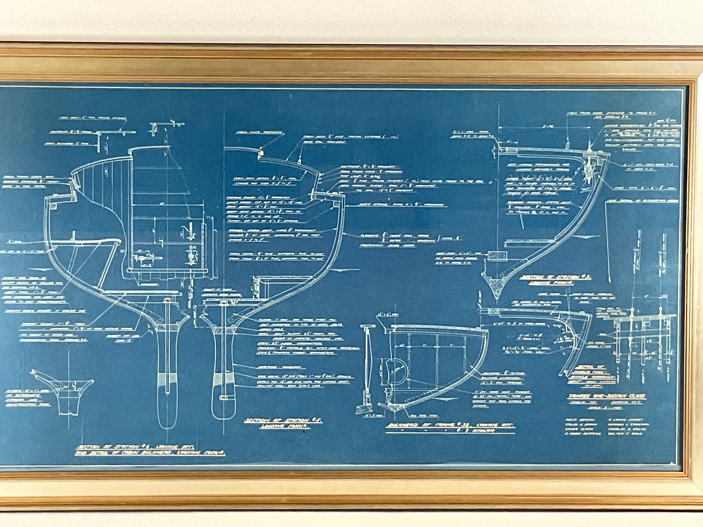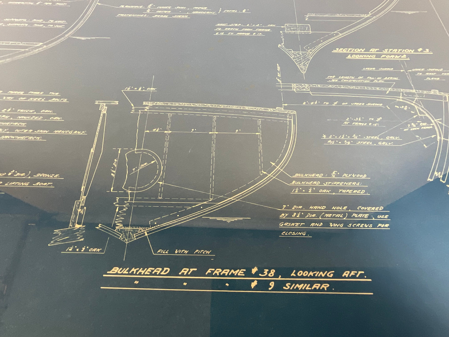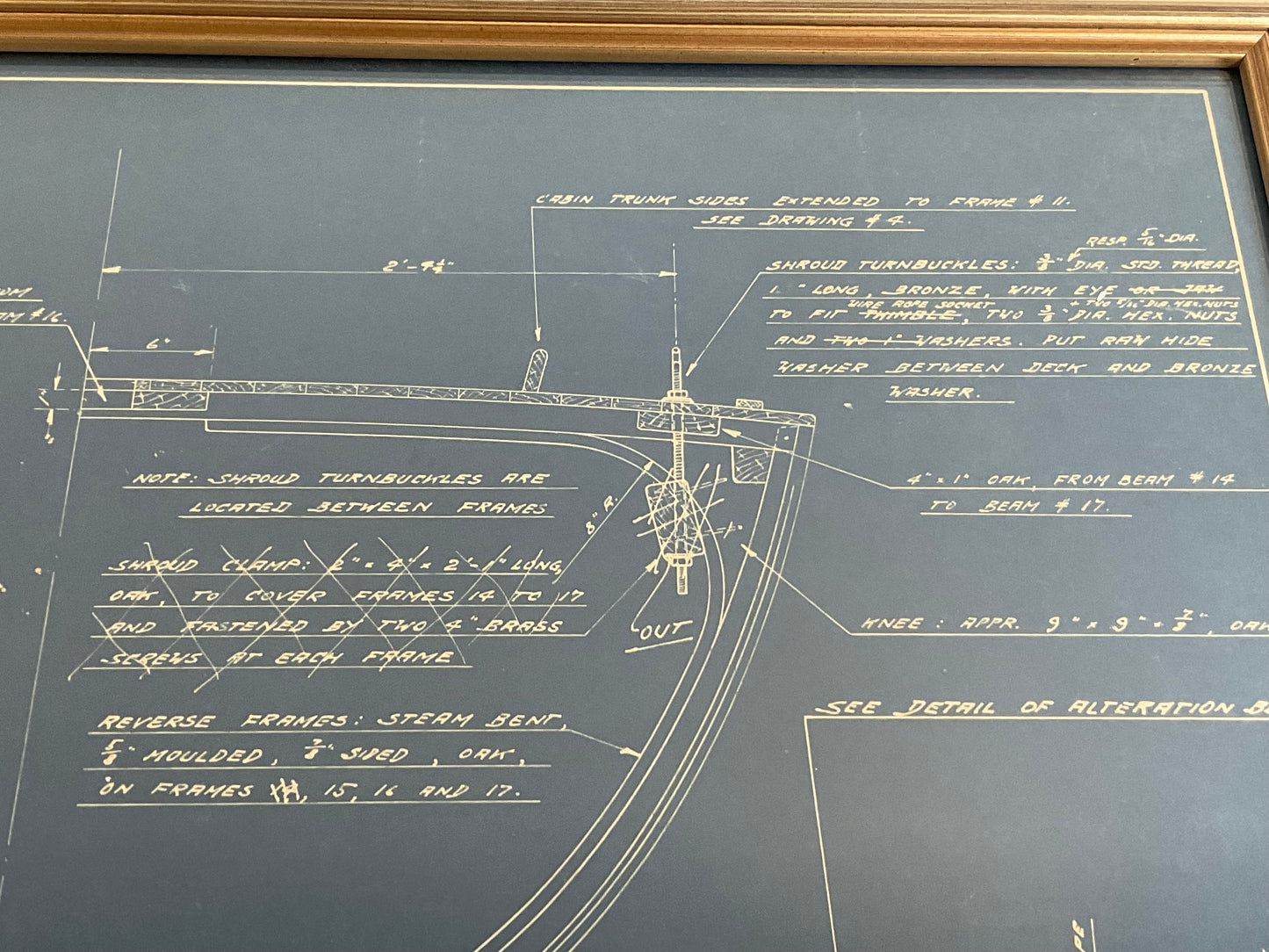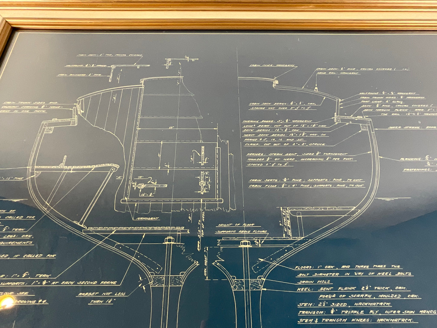Hull section blueprint for the Yankee one design class. This is a very detailed blueprint with an incredible amount of information. It shows hull cross sections with materials, dimensions, thicknesses, etc.